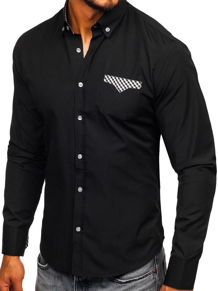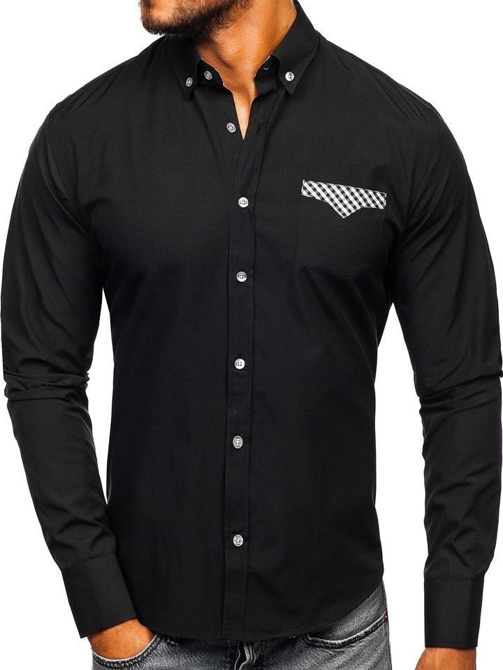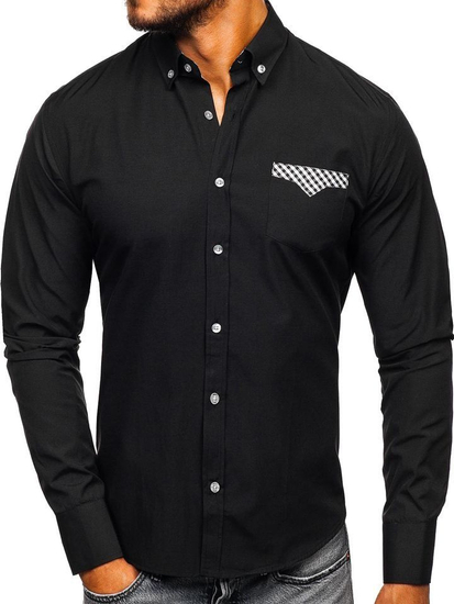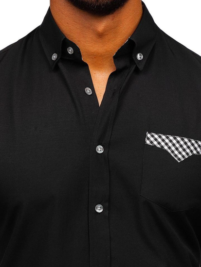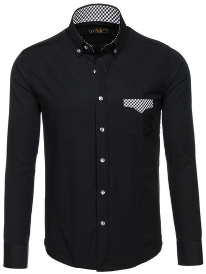 Cămașă bărbați slim fit Bolf culoare elegantă negru. Se așează excelent pe silueta masculină, are detalii casual. Gulerul, buzunarul și inserțiile în carouri conferă farmec. Cămașa neagră pentru bărbat arată excelent cu pantaloni chino. Poartă cu sacou, pulover, cu jeanși.