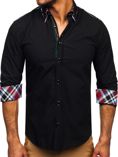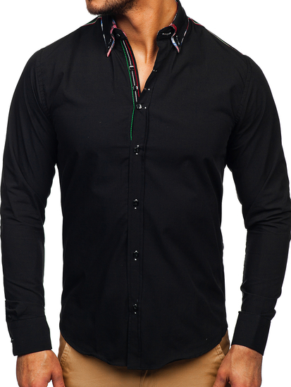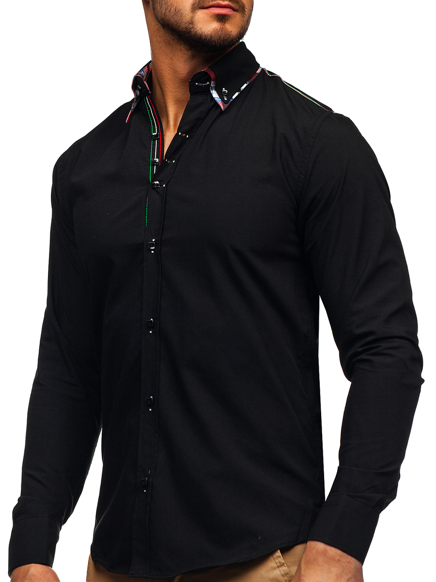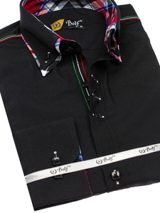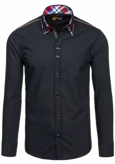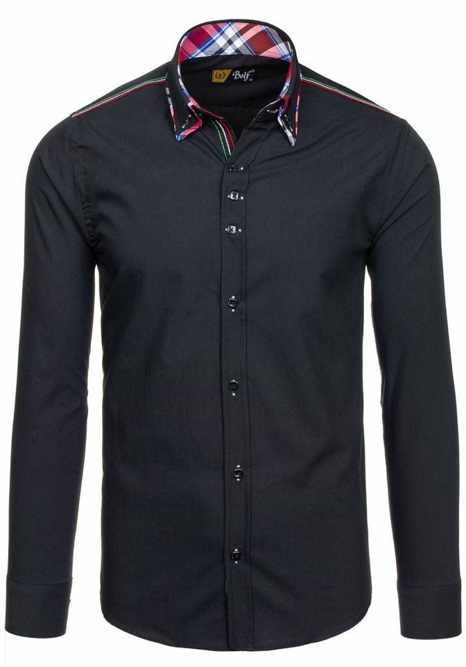 Cămăși negre pentru bărbat potrivite pe siluetă Bolf. Potrivite la serviciu și în outfit-urile libere. Cămașa neagră pentru bărbat evidențiază fain setul cu jeanși și adidași. Combină de asemenea cu sacou, pantaloni chino, geacă de piele, sau geacă bomber roșie.