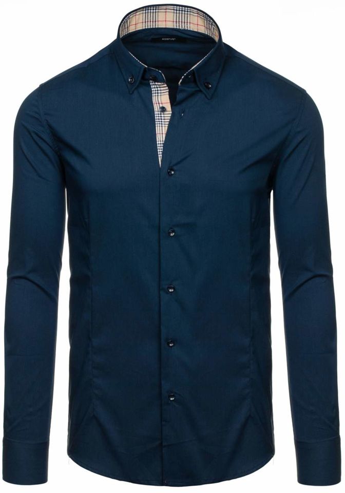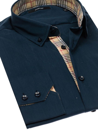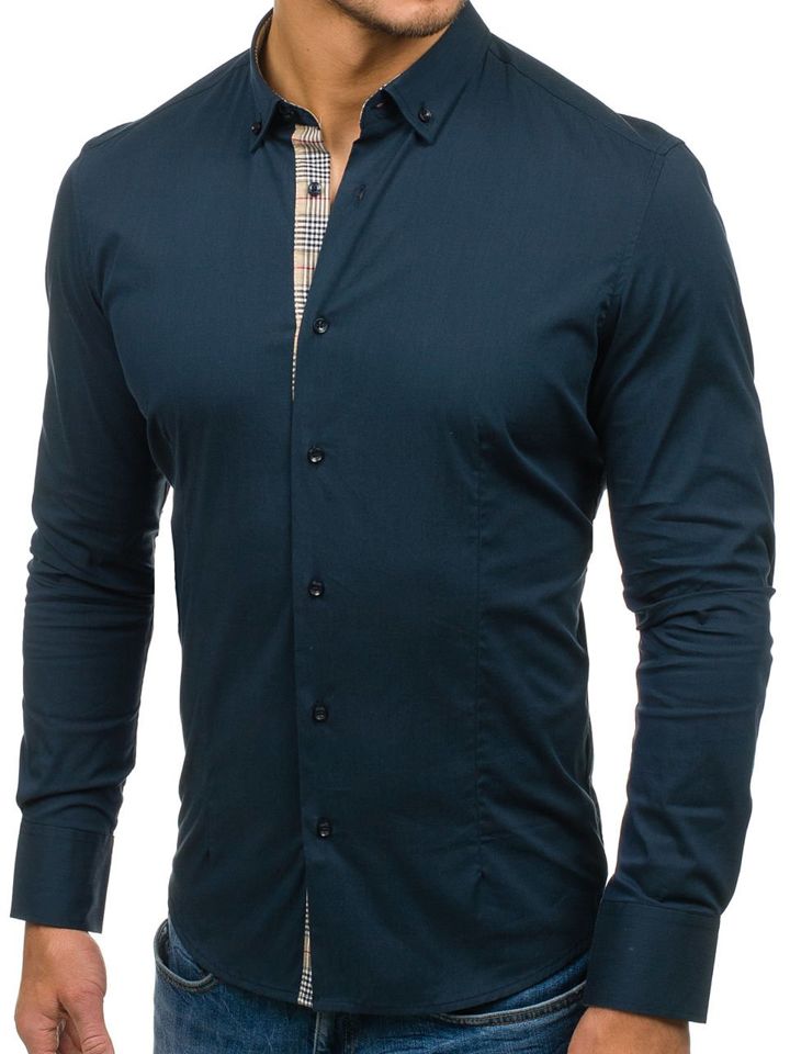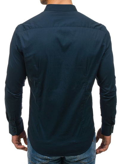 Opiniile utilizatorilor despre Cămașă elegantă pentru bărbat cu mâneca lungă bleumarin Bolf 7197