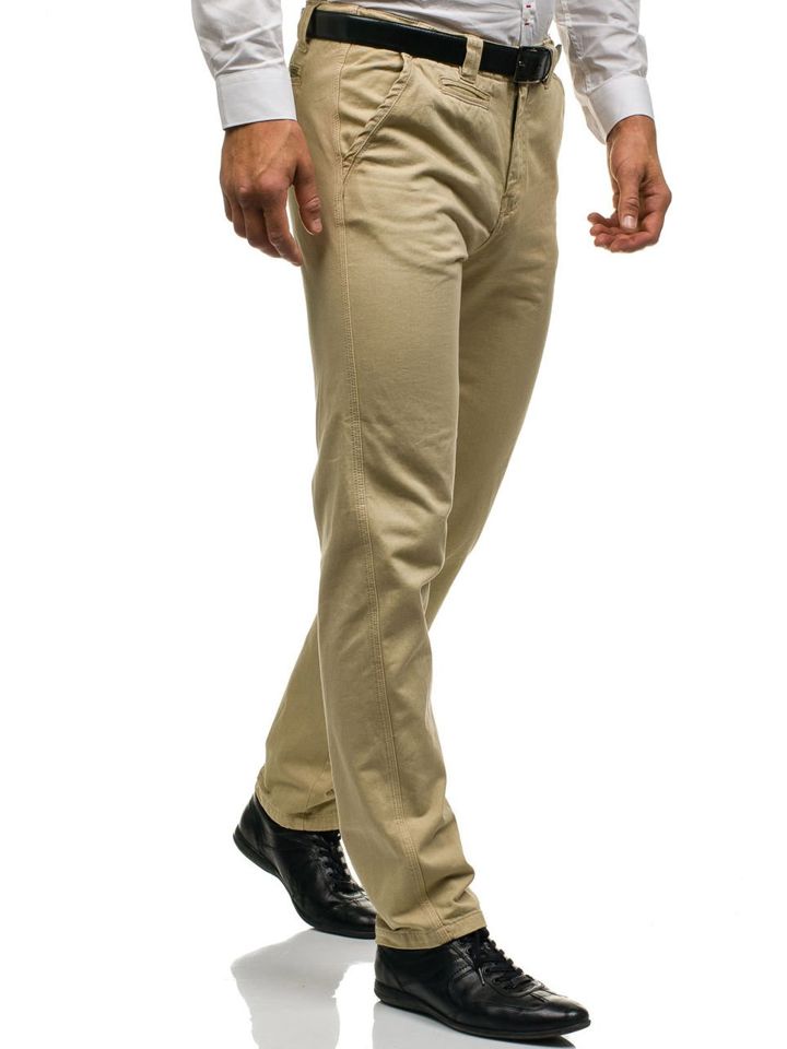 Pantaloni chino expresivi, pentru bărbat bej Bolf. Ușor de purtat, se așează genial, confecționați din bumbac moale. Poartă-i cu tricou polo, cămașă și sacou, pulover sau cămașă și geacă stilată.