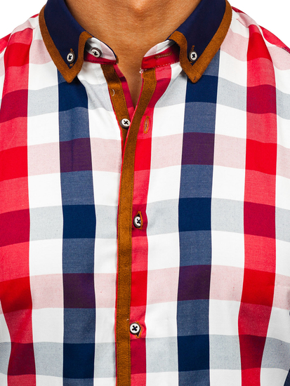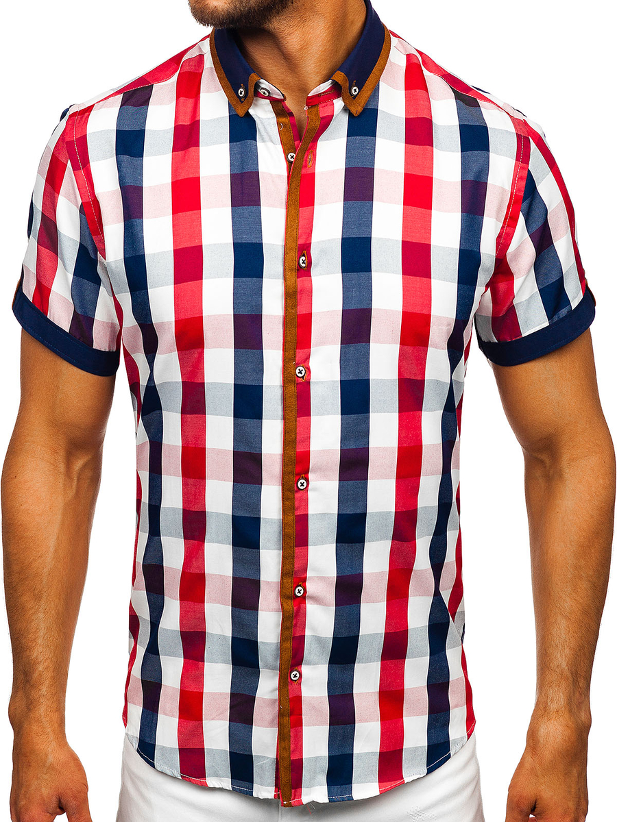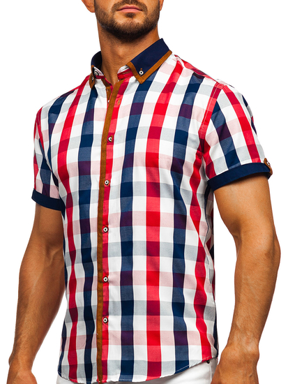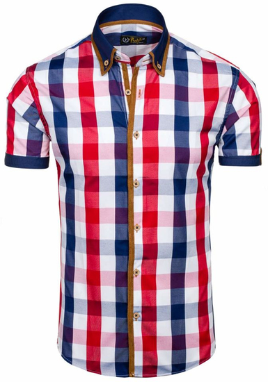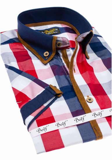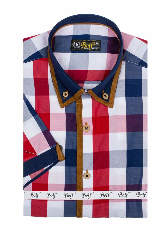 Opiniile utilizatorilor despre Cămașă în carouri cu mâneci scurte pentru bărbați, roșu Bolf 5507-1
