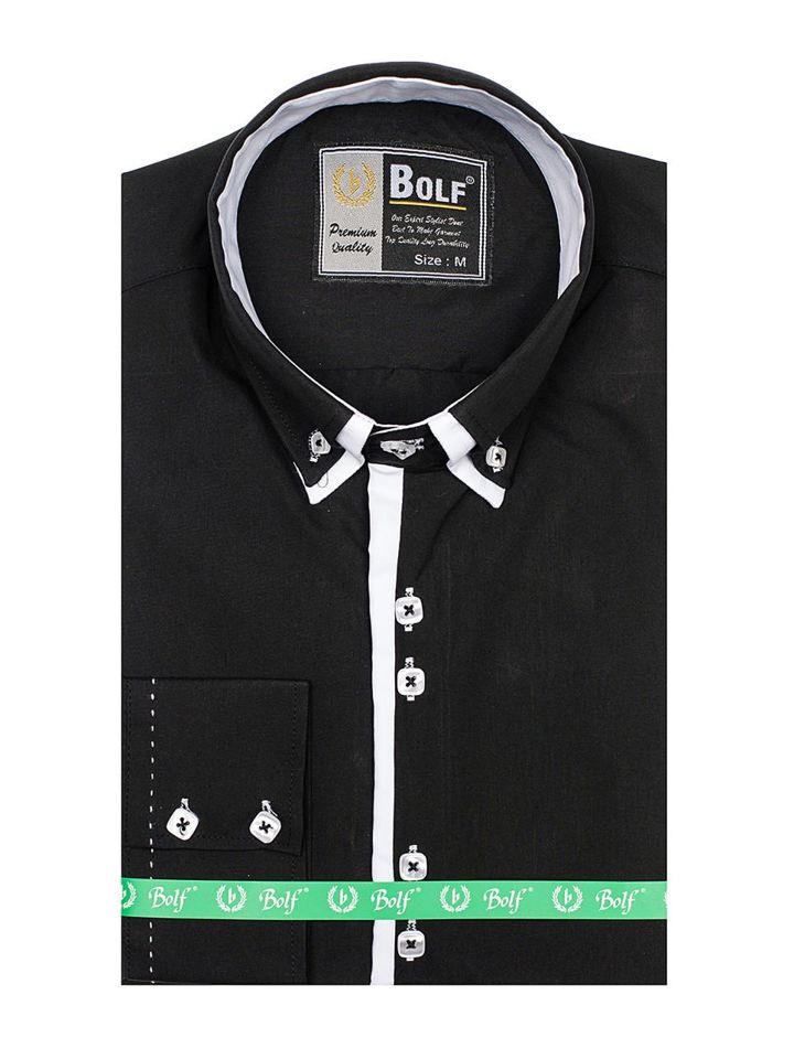 Opiniile utilizatorilor despre Cămașă elegantă cu mâneca lungă bărbați negru Bolf 1721-1
