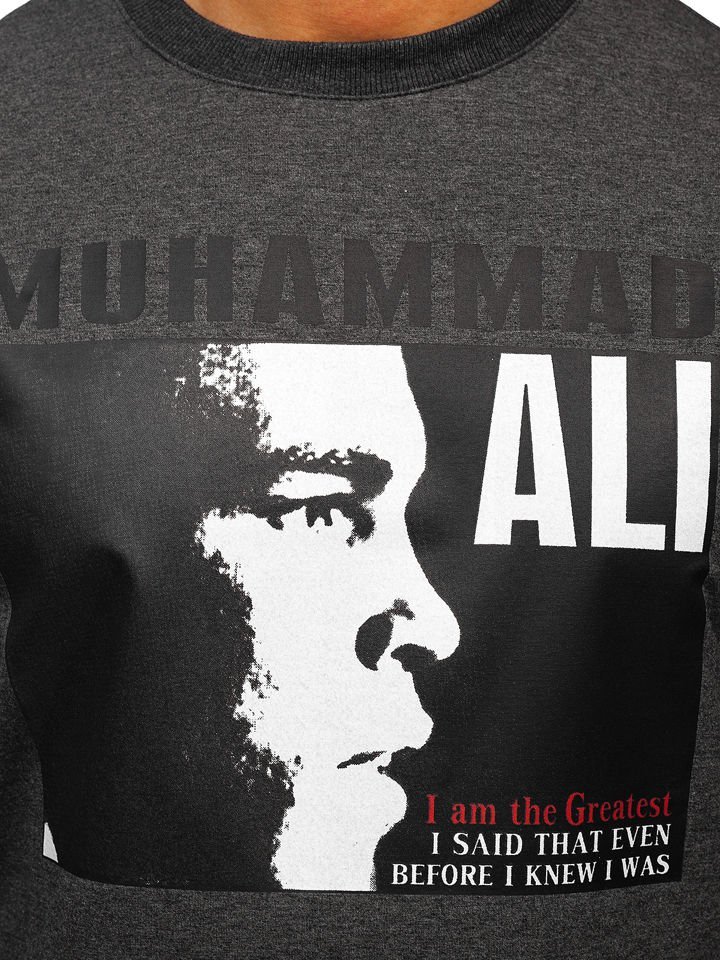 Bluze gri-deschis pentru bărbat comode Bolf cu imagine imprimată guru sportului Muhammad Ali. Bluza gri-deschis cu imprimeu potrivită pentru trening cu niște joggeri sau șorți. În fiecare zi poart-o cu jeanși casual sau pantaloni street style baggy.