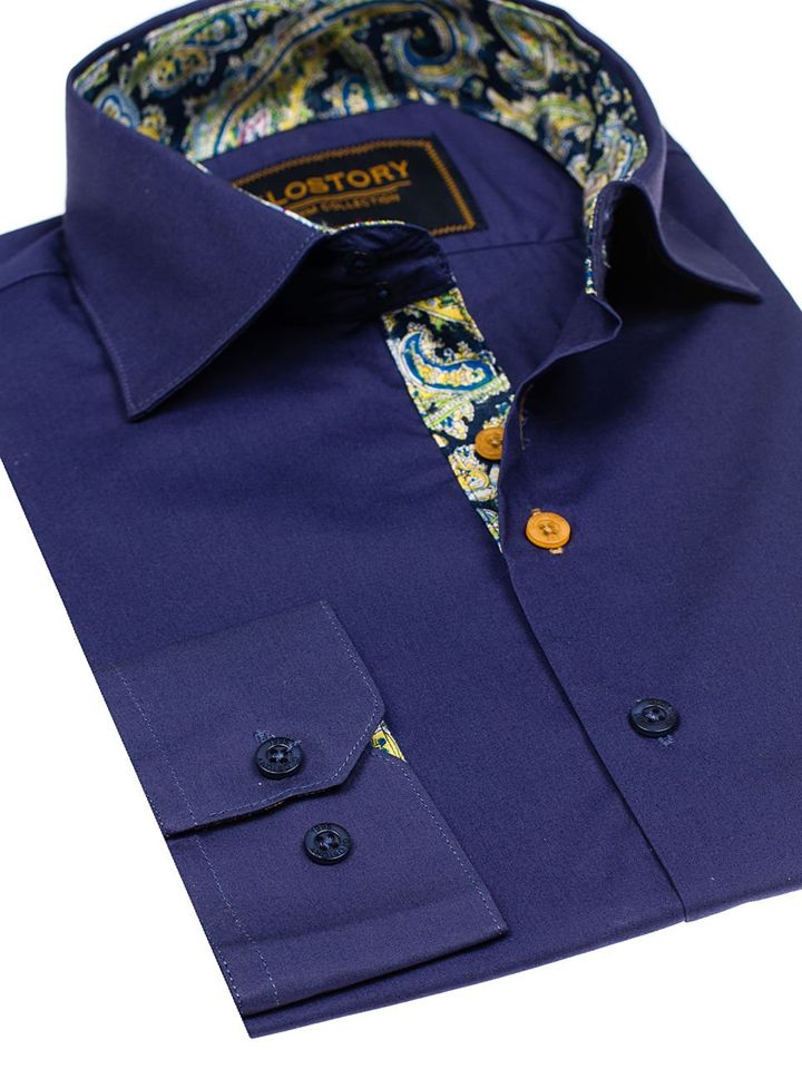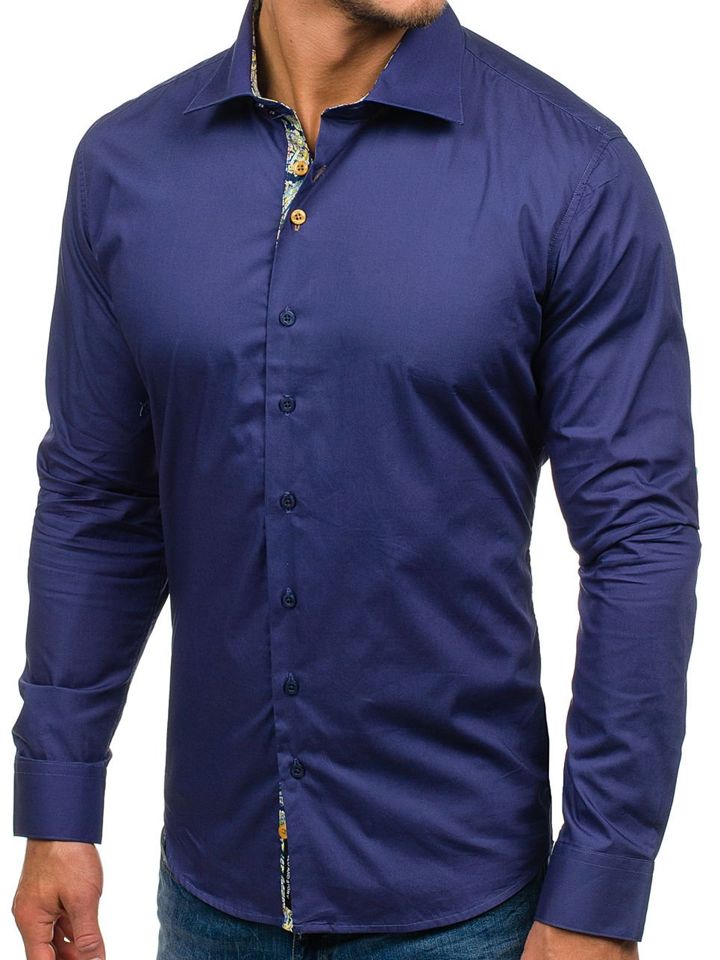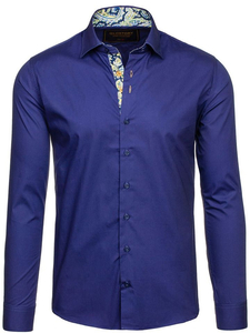 Cămăși bluemarin pentru bărbat Bolf, pentru outfit-urile zilnice stilate. Arată excelent combinate cu sacou sau cu jeanși. Cămașa bluemarin cu mâneca lungă slim fit arată perfect fără cravată. Lărgește puțin gulerul și arată linia de nasturi de model pasley, pentru a împrospăta look-ul.