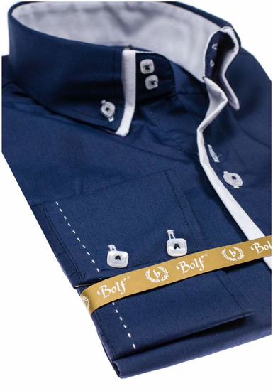 Opiniile utilizatorilor despre Cămașă cu mâneca lungă bărbați bleumarin Bolf 1721-1