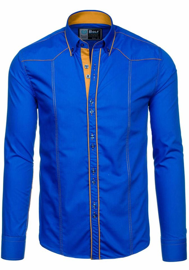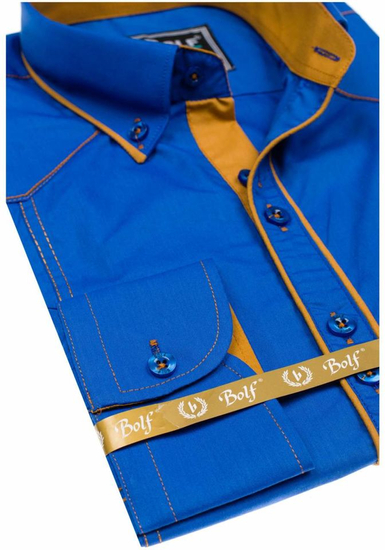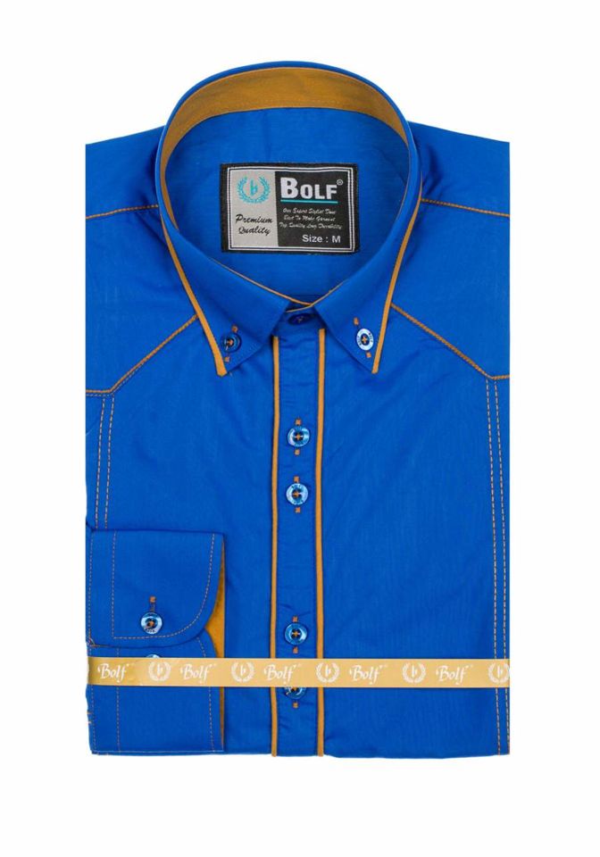 Opiniile utilizatorilor despre Cămașă elegantă cu mâneca lungă bărbați albastru Bolf 4777