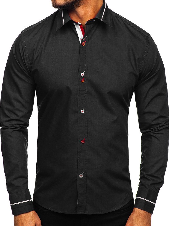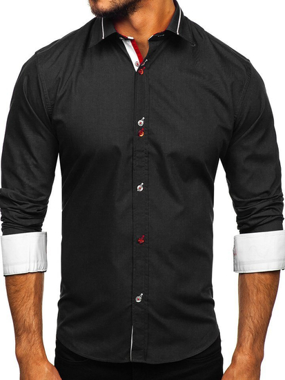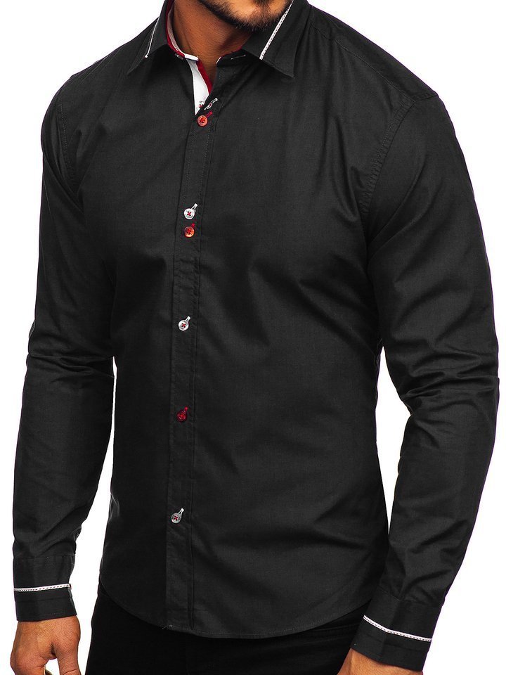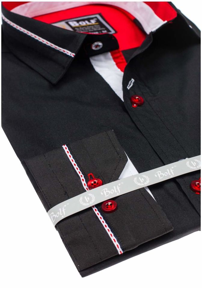 Cămăși negre pentru bărbat, stilate Bolf cu detalii colorate. Au închiderea neobișnuită, manșetele si gulerul sunt frumos evidențiate. Cămașa neagră cu mâneca lungă slim fit arată excelent în stilizările la multe ocazii. Poart-o cu jeanși, pantaloni chino, combină cu geacă stilată.