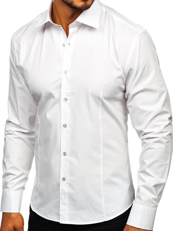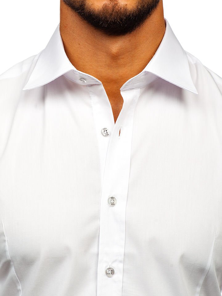 Cămasa elegantă albă Bolf 1703 trebuie neapărat să fie în dulapul fiecărui bărbat elegant. Acest model a fost confecționat în culori intensive, datorită acestui lucru pot fi combinați în ținutele zilnice. Aceste cămăși se recomandă fanilor minimalismului și eleganței în modă. Sunt comode și confecționate calitativ. Must have în garderoba bărbatului de afaceri. Modelul clasic și simplu poate fi folosi în diverse ținute si purtat în ținutele zilnice Cămașa are croiala slim fit cu închidere la nasturi și are terminația rotunjită. Mânecile sunt terminate manșete largi reglabile cu închidere la nasture. Are guler clasic.