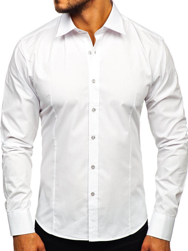 Cămasa elegantă albă Bolf 1703 trebuie neapărat să fie în dulapul fiecărui bărbat elegant. Acest model a fost confecționat în culori intensive, datorită acestui lucru pot fi combinați în ținutele zilnice. Aceste cămăși se recomandă fanilor minimalismului și eleganței în modă. Sunt comode și confecționate calitativ. Must have în garderoba bărbatului de afaceri. Modelul clasic și simplu poate fi folosi în diverse ținute si purtat în ținutele zilnice Cămașa are croiala slim fit cu închidere la nasturi și are terminația rotunjită. Mânecile sunt terminate manșete largi reglabile cu închidere la nasture. Are guler clasic.