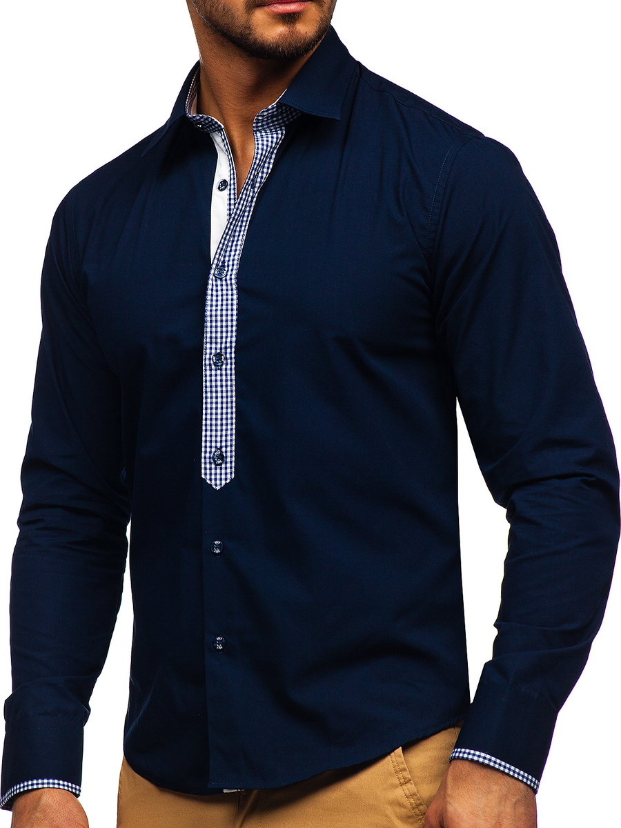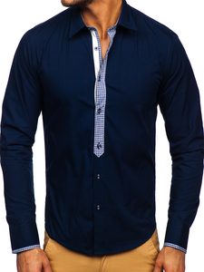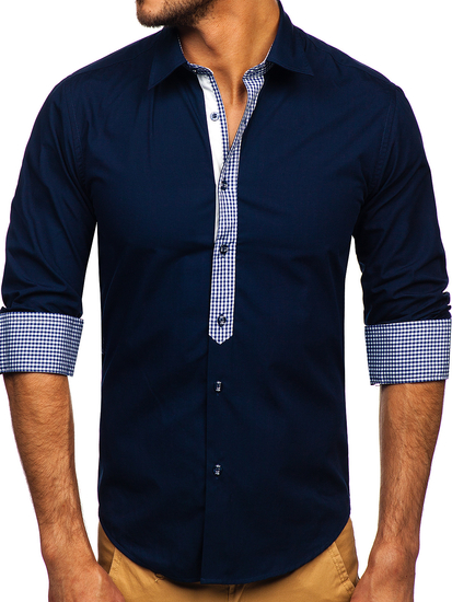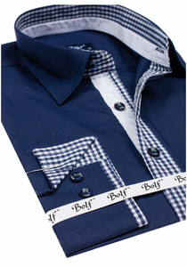 Opiniile utilizatorilor despre Cămașă elegantă cu mâneca lungă bleumarin Bolf 6873