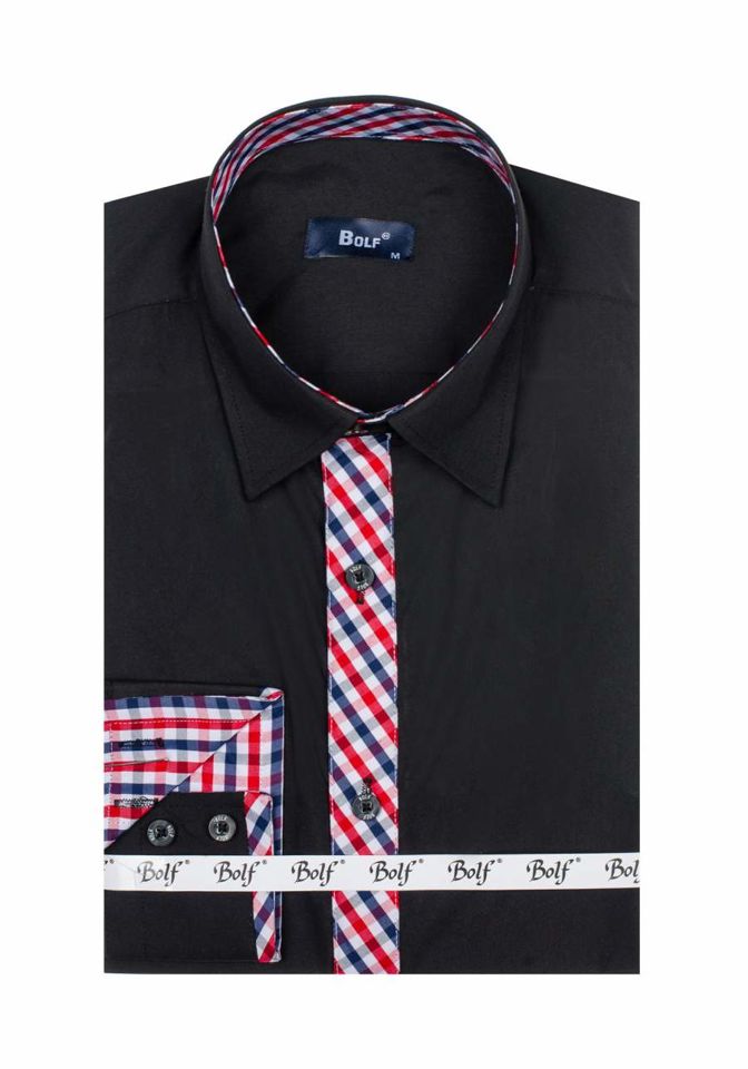 Cămăși negre, elegante cu mâneca lungă Bolf. Linia de nasturi în carouri frumoasă, excelent înlocuiește cravata și fantastic împrospătează look-ul. Cămașa stilată neagră pentru bărbat slim fit, ideal se potrivește pentru stilizările ocazionale. Poart-o cu pantaloni chino, jeanși, sacou casual sau pulover.