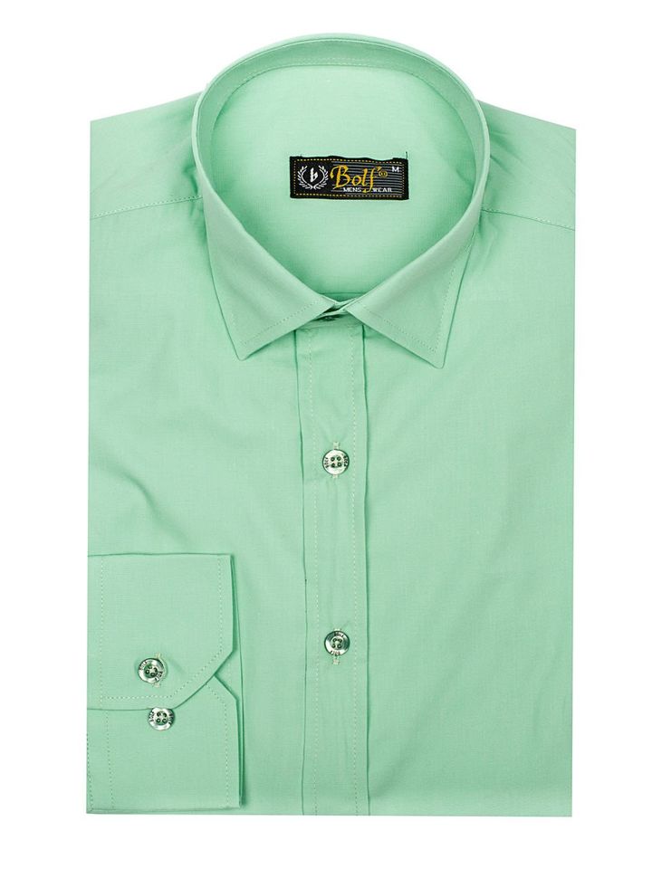 Cămasa elegantă verde-menta Bolf 1703 trebuie neapărat să fie în dulapul fiecărui bărbat elegant. Acest model a fost confecționat în culori intensive, datorită acestui lucru pot fi combinați în ținutele zilnice. Aceste cămăși se recomandă fanilor minimalismului și eleganței în modă. Sunt comode și confecționate calitativ. Must have în garderoba bărbatului de afaceri. Modelul clasic și simplu poate fi folosi în diverse ținute si purtat în ținutele zilnice Cămașa are croiala slim fit cu închidere la nasturi și are terminația rotunjită. Mânecile sunt terminate manșete largi reglabile cu închidere la nasture. Are guler clasic.