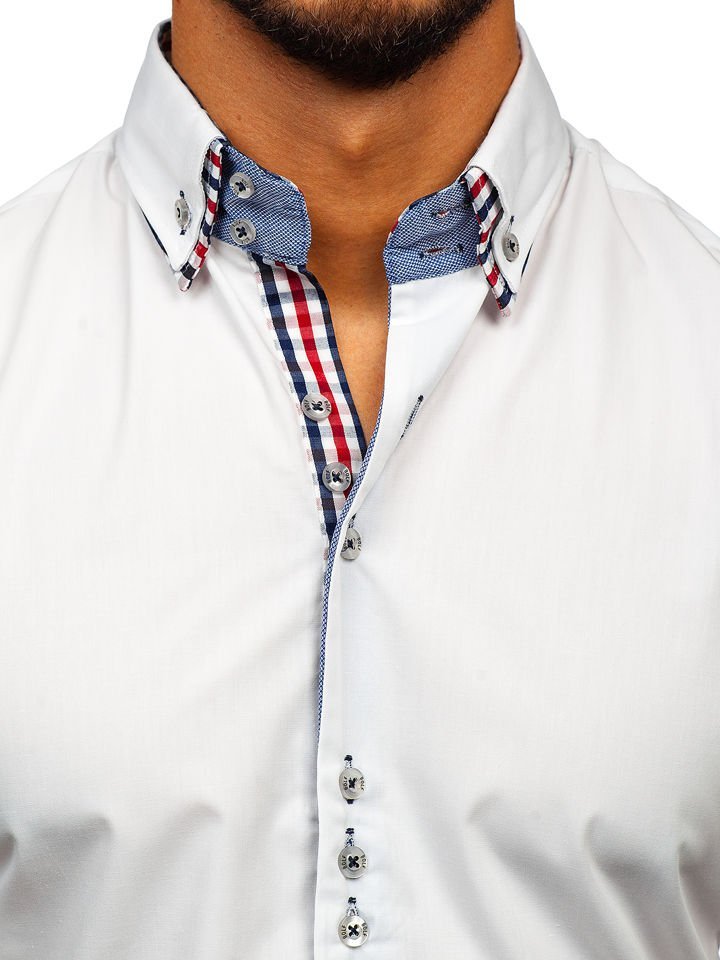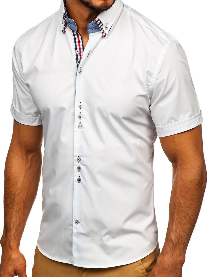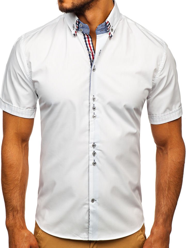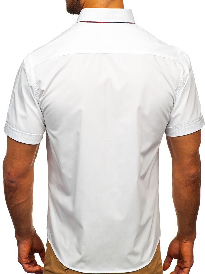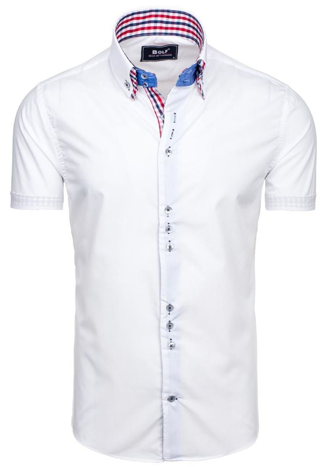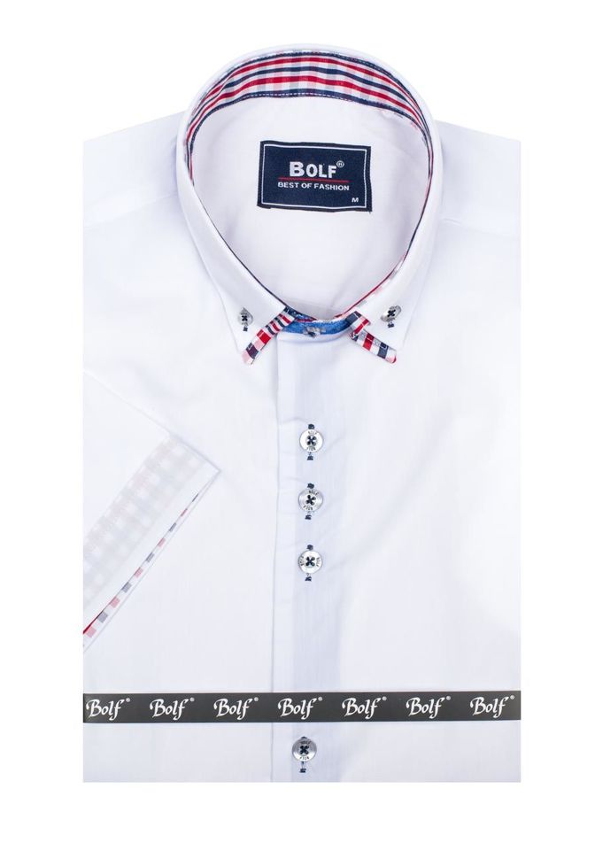 Cămăși albe pentru bărbat cu mâneca scurtă Bolf sunt ideale vara. Vei îndrăgi croiala stilată slim fit, dar și așa aici detaliile sunt cele mai importante. Gulerul mai puțin formal și inserțiile în carouri îndată captează privirea. Cămașa albă arată perfect cu pantaloni chino. Poart-o deasemenea cu șorți de vară denim.