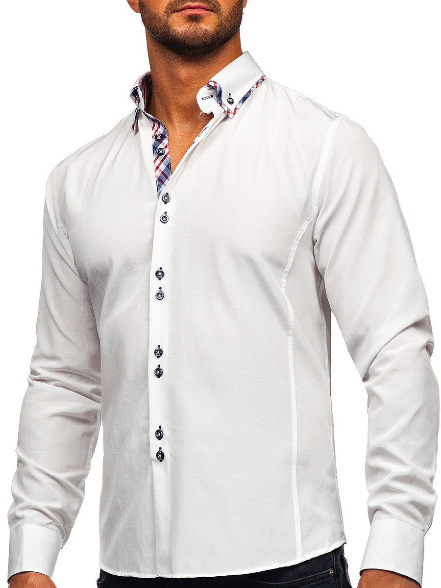Cămăși albe cu mâneca lungă de la Bolf excelent se înscriu în stilul zilnic. Arată minunat sub sacou. Se potrivește în outfit-urile mai puțin formale. Cămașa albă pentru bărbat slim fit este stilată, foarte comodă. Inserțiile în carouri îndată captează atenția.