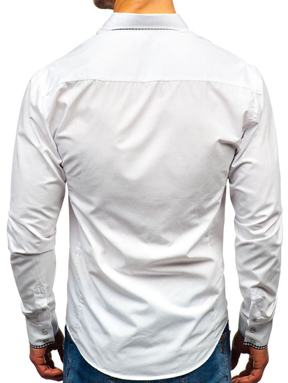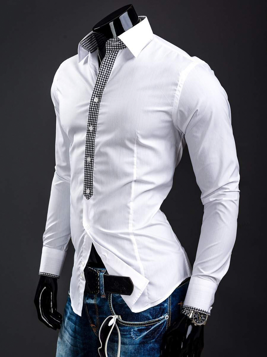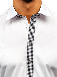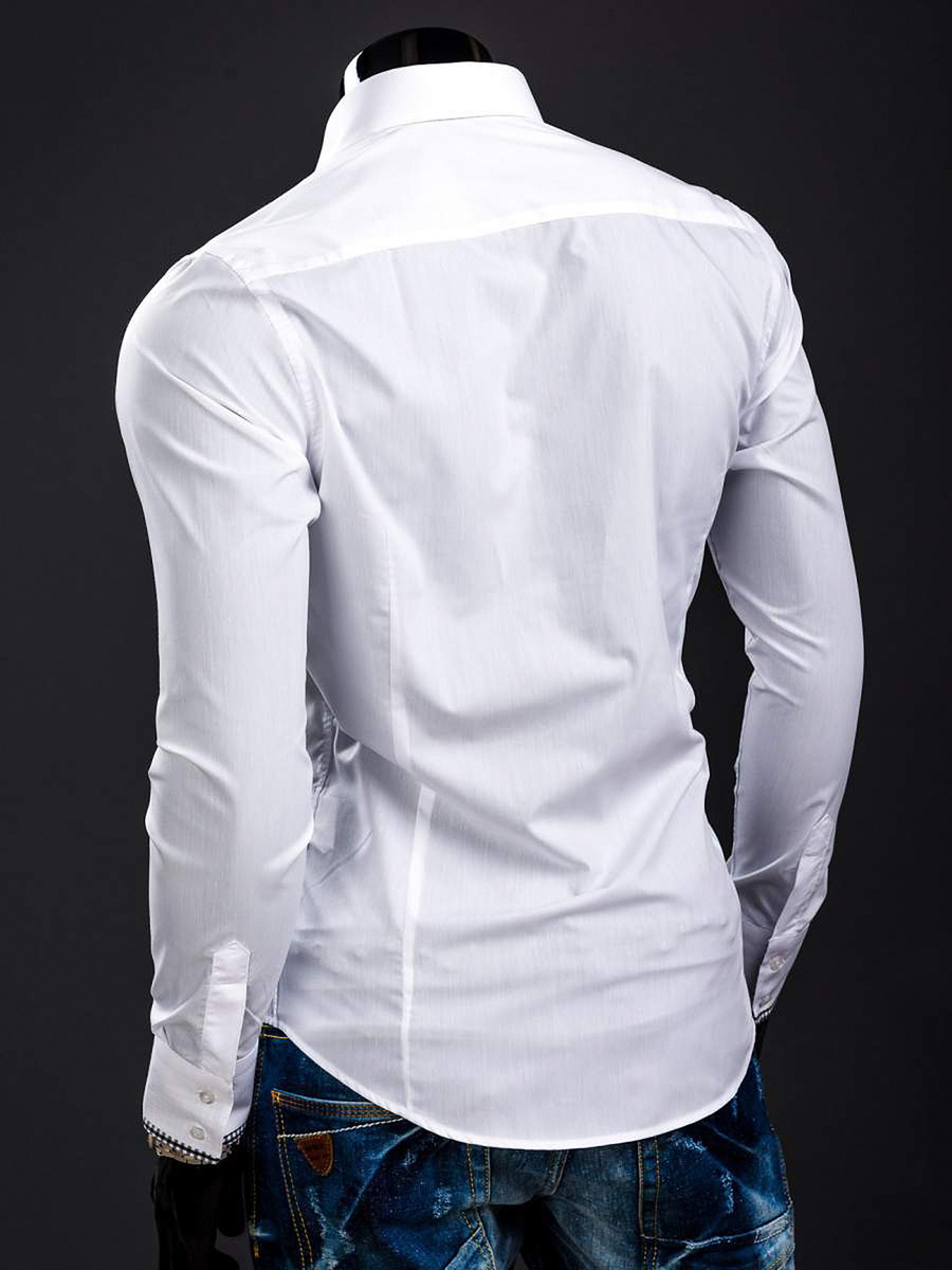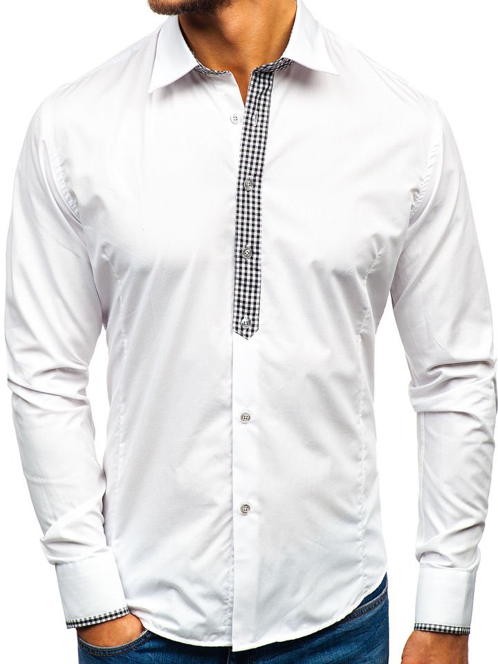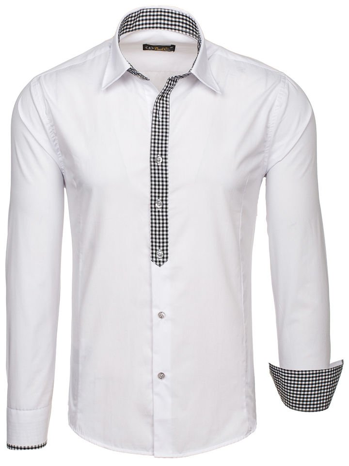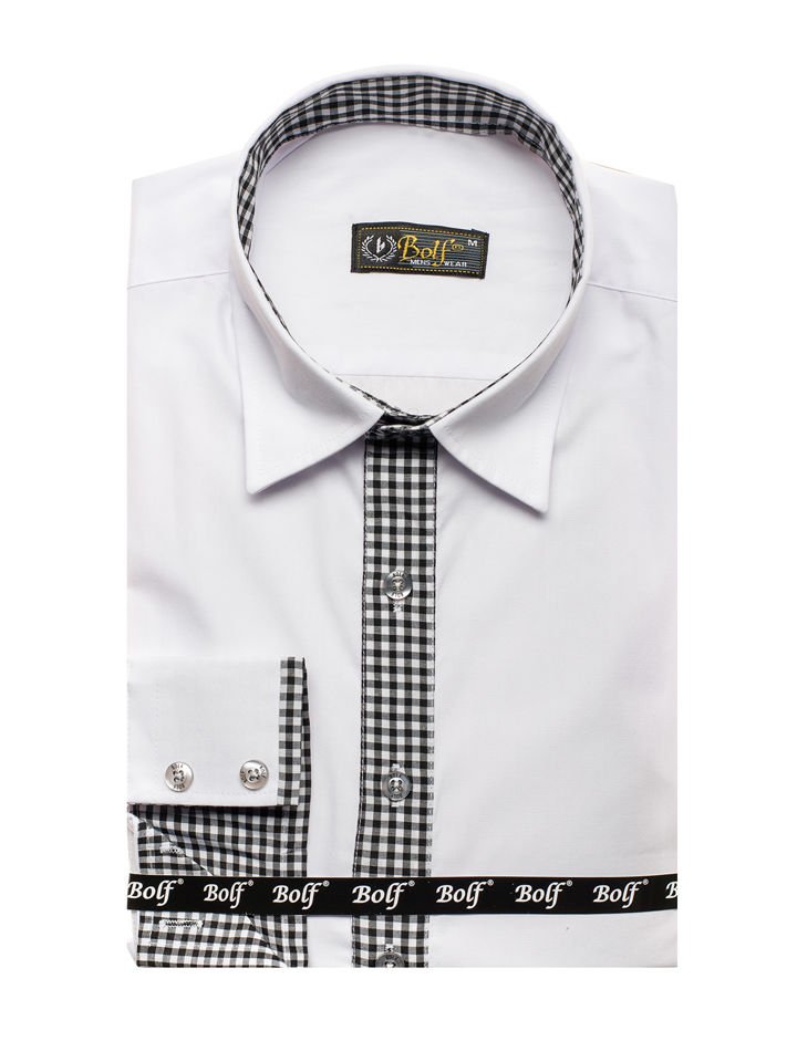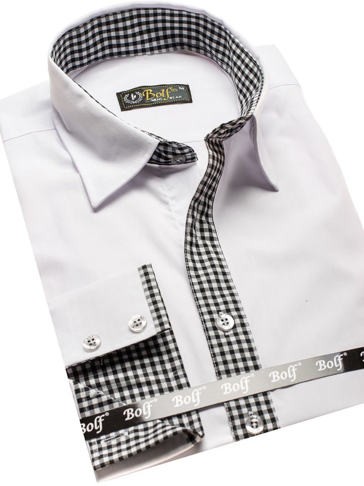 Cămăși albe la modă pentru bărbat din colecția Bolf. Ideale în fiecare zi și la serviciu. Cu inserții expresive și stilate în carouri mărunte Cămașa albă pentru bărbat slim fit se prezintă excelent cu sacou sau combinată doar cu jeanși ori pantaloni chino colorați.