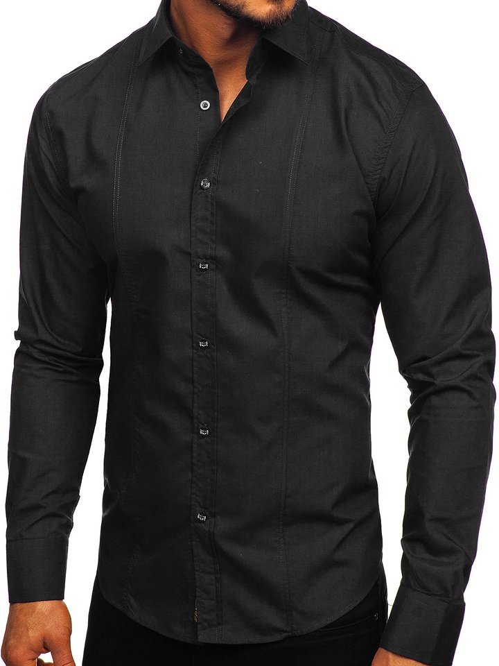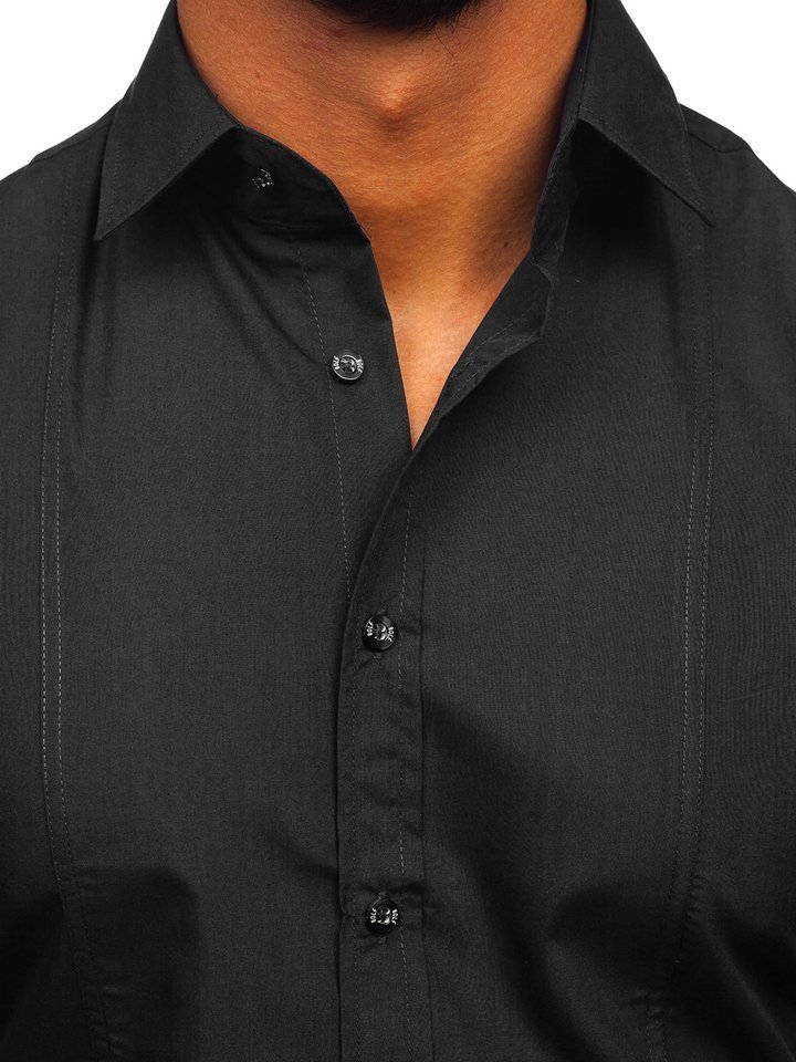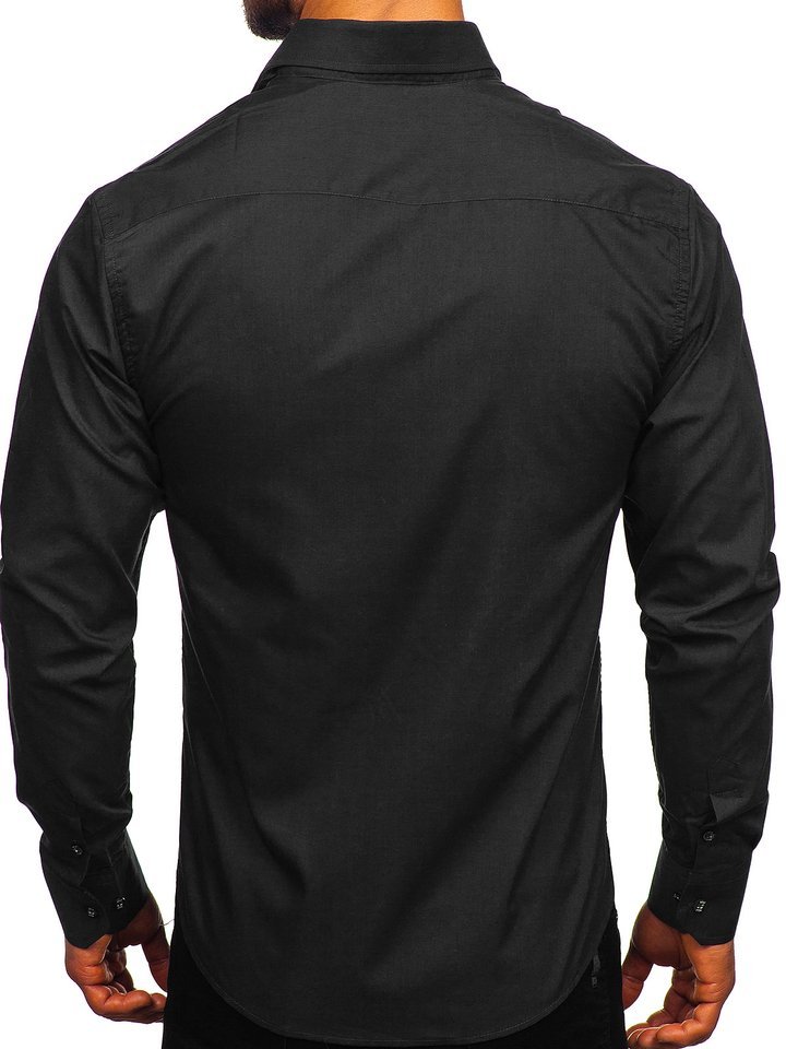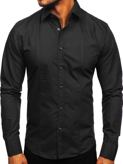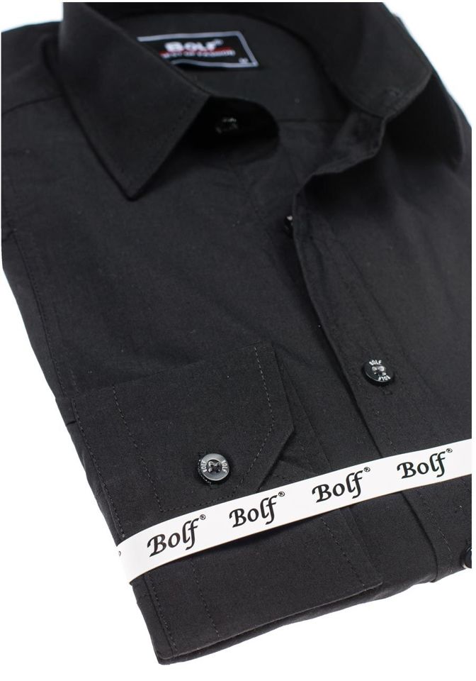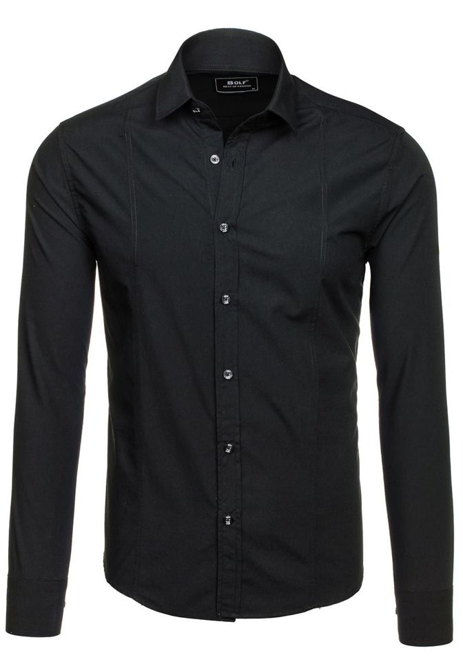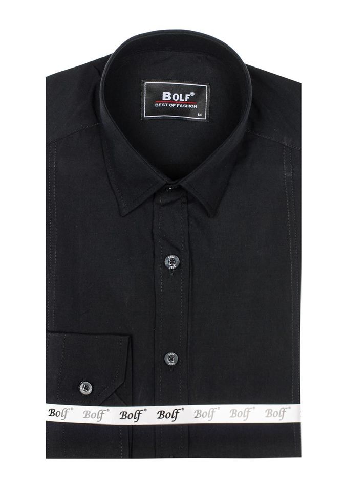 Cămașă elegantă bărbătească neagră cu mânecă lungă Bolf 6944
