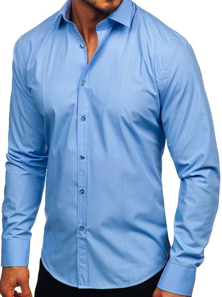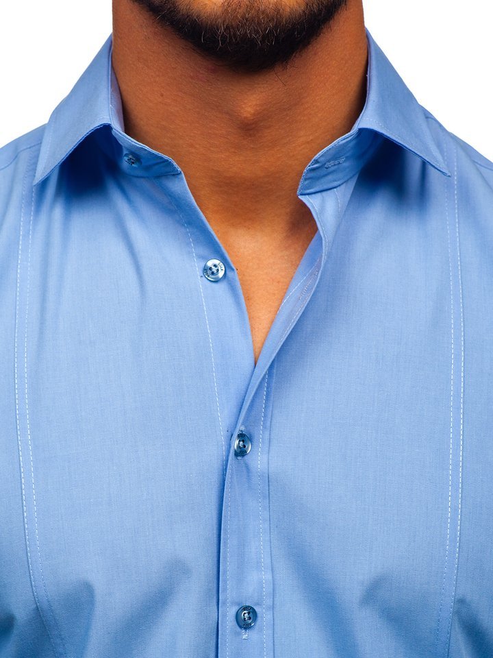 Opiniile utilizatorilor despre Cămașă elegantă bărbătească albastră cu mâneci lungi Bolf 6944