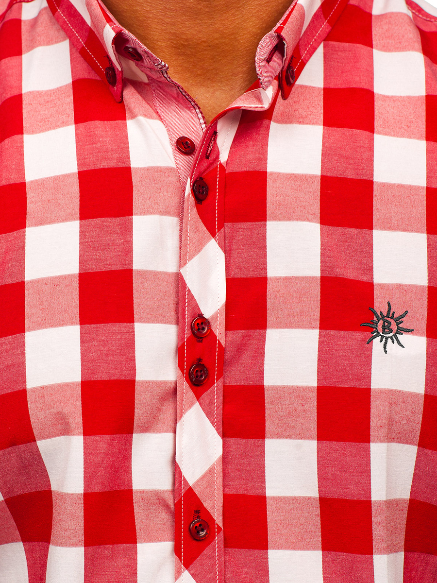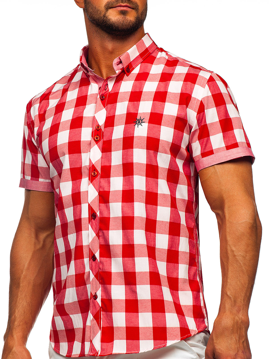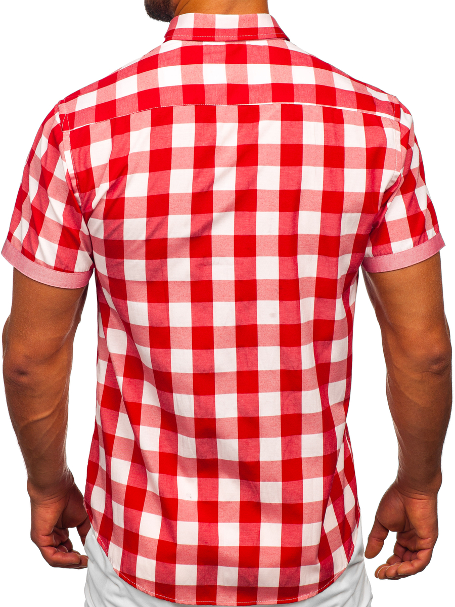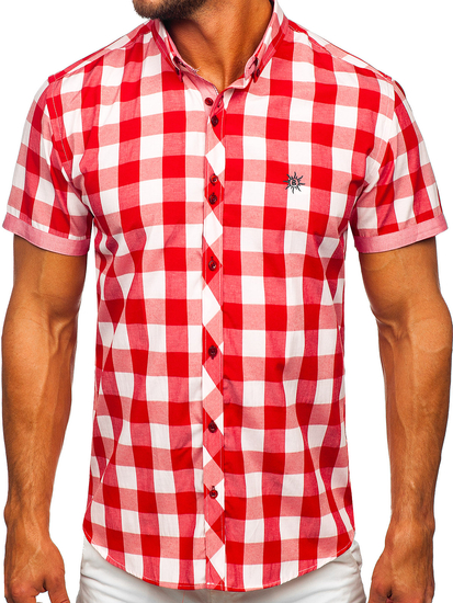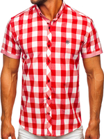Opiniile utilizatorilor despre Cămașă bărbați în carouri cu mâneca scurtă roșie Bolf 6522