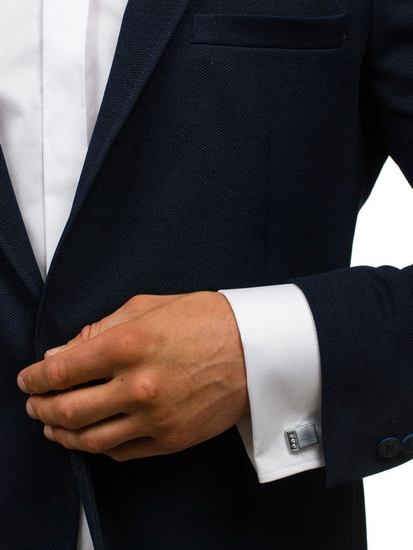 Butoni fantastici pentru costum de la Bolf. În formă dreptunghiulară, au culoare minunată argintie și terminația strălucitoare. Pietrele frumoase pe laterală îi conferă un caracter extraordinar. Butonii pentru manșete vor evidenția fiecare stilizare cu costum.