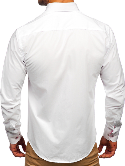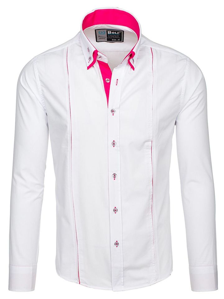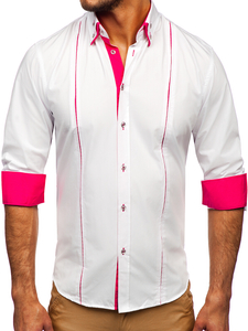 Cămașă elegantă pentru bărbat cu mâneca lungă alb-roz Bolf 4744