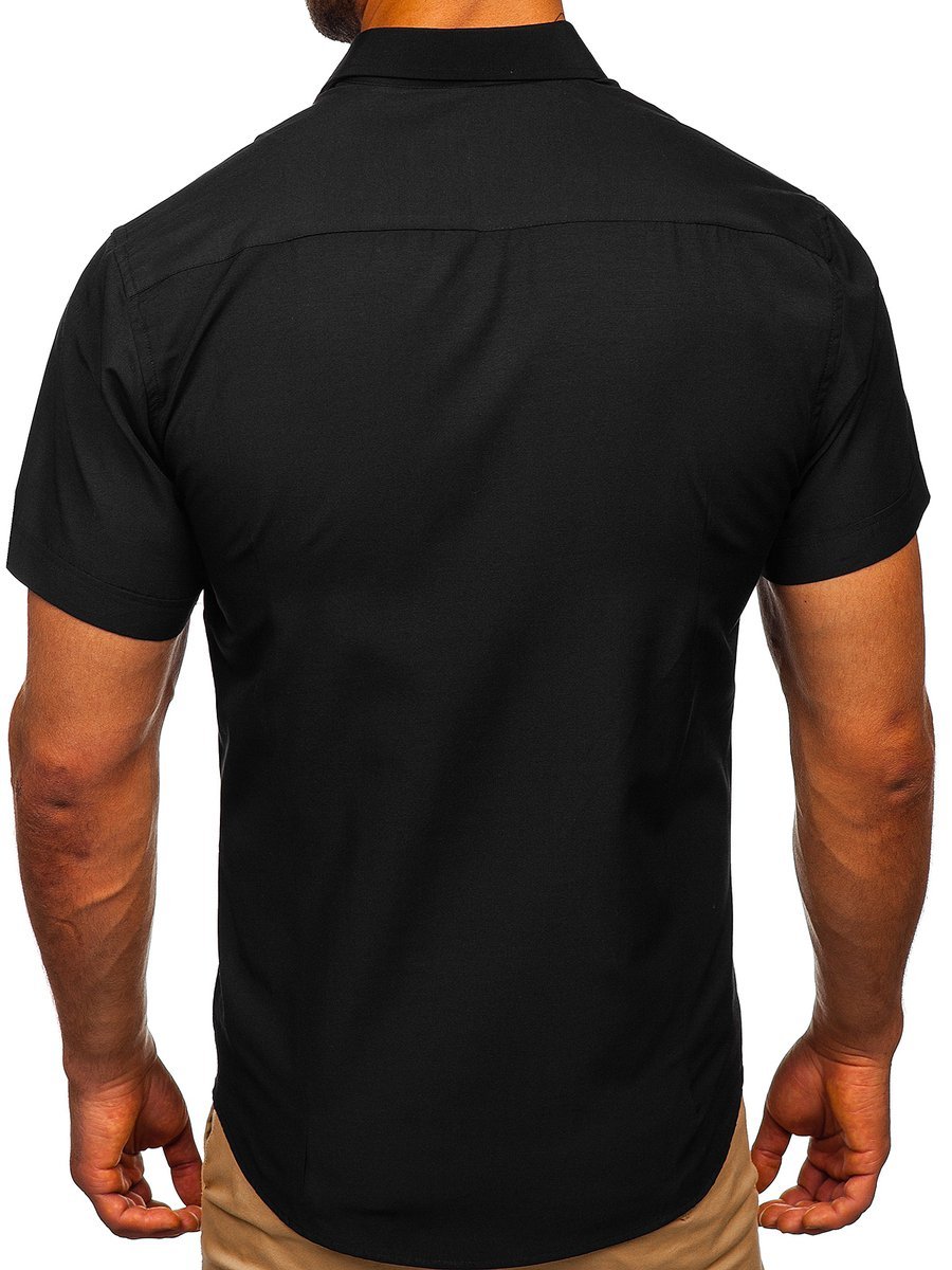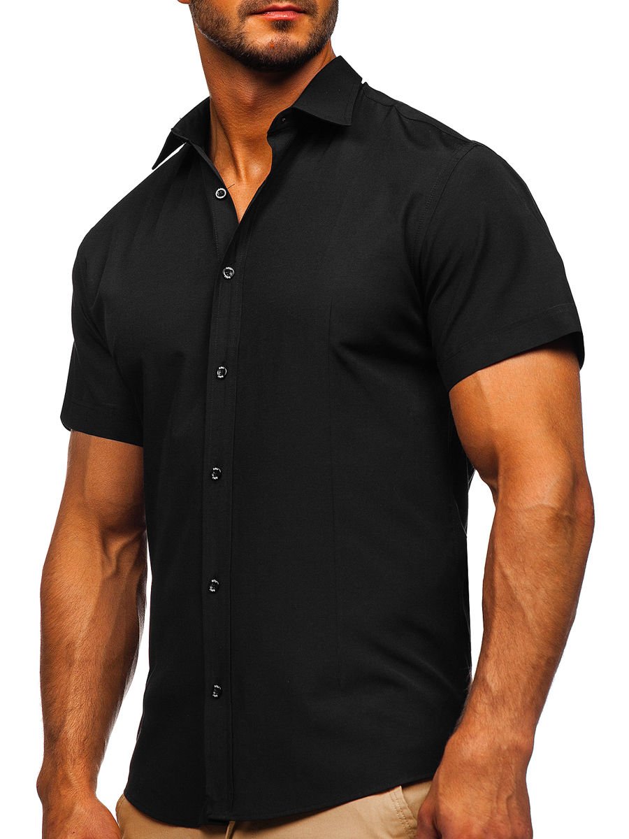 Cămași negre cu mâneca scurtă, calitate excelentă de la Bolf. Se așează excelent, comod de purtat, au guler frumos kent. Cămașa neagră pentru bărbat slim fit se potrivește ideal în outfit-urile pentru zilele calde. Îmbrac-o cu jeanși, șorți, pantaloni chino, combină cu cardigan.