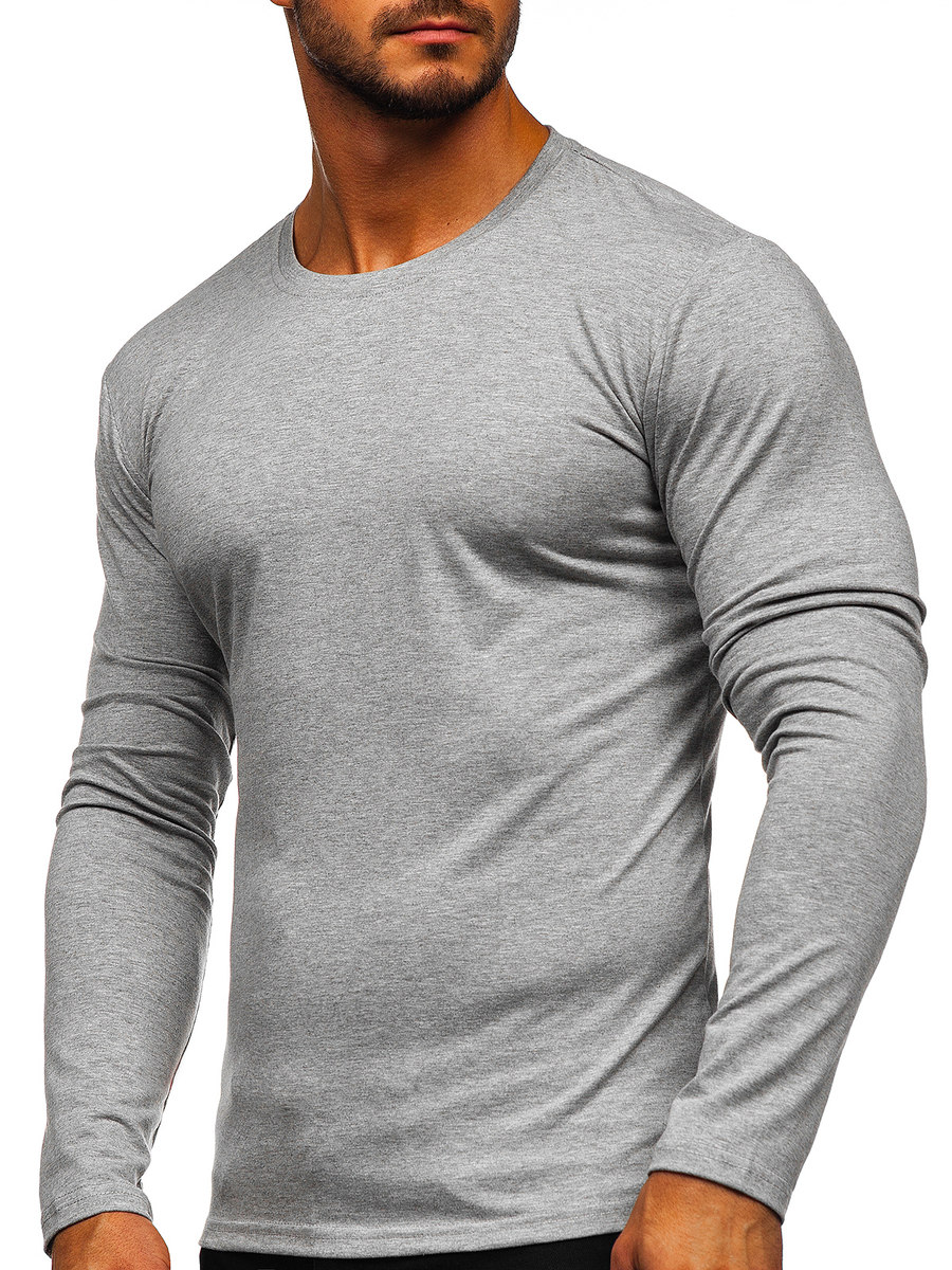 Long sleeve pentru bărbat fără imprimeu gri Bolf 2088L