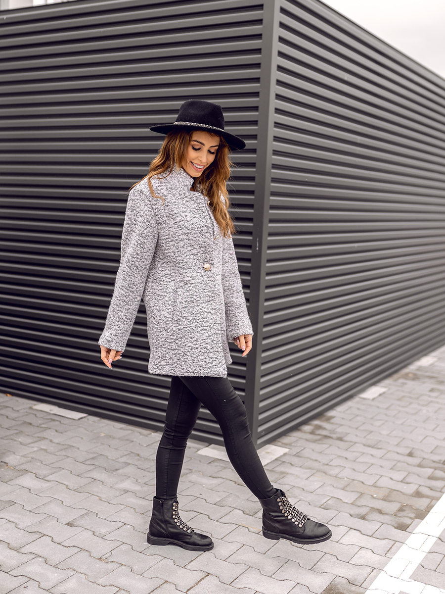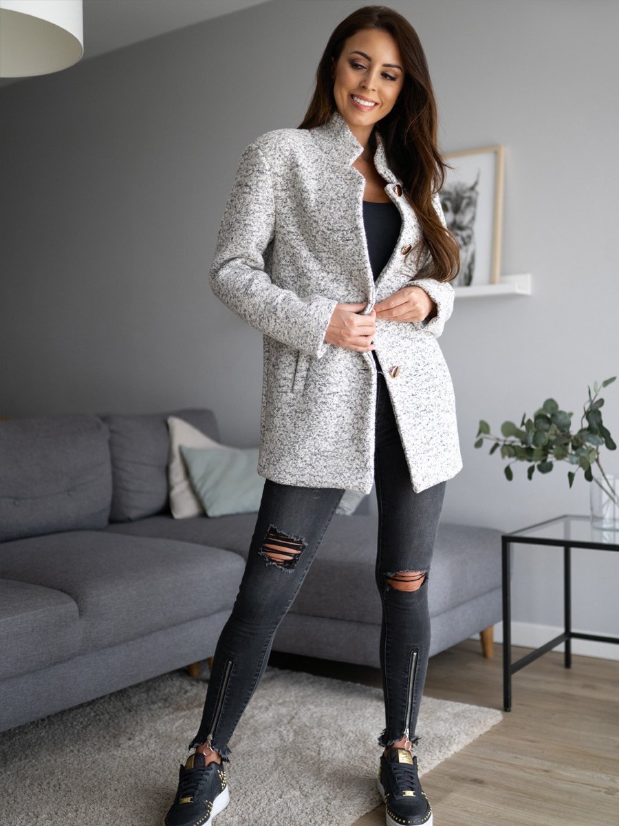 Paltoane melanj pentru femeie Bolf cu guler, călduroase. Un model minimalist și foarte feminin la multe ocazii. Poartă paltonul alb pentru femeie cu rochie tricotată, jeanși, pulover oversize. Combină cu tocuri, bocanci, cizme. Combină albul cu gri, pasteluri sau negru.