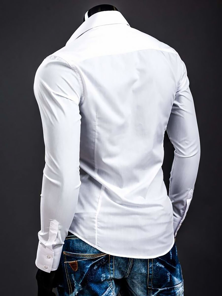 Cămașa albă elegantă pentru bărbați cu mâneci lungi Bolf 1703A este un articol care ar trebui să fie în garderoba fiecărui bărbat, nu doar una elegantă. Acest model a fost confecționat în culori intensive, datorită acestui lucru pot fi combinați în ținutele zilnice. Aceste cămăși se recomandă fanilor minimalismului și eleganței în modă. Sunt comode și confecționate calitativ. Must have în garderoba bărbatului de afaceri. Modelul clasic și simplu poate fi folosi în diverse ținute si purtat în ținutele zilnice Cămașa are croiala slim fit cu închidere la nasturi și are terminația rotunjită. Mânecile sunt terminate manșete largi reglabile cu închidere la nasture. Are guler clasic.