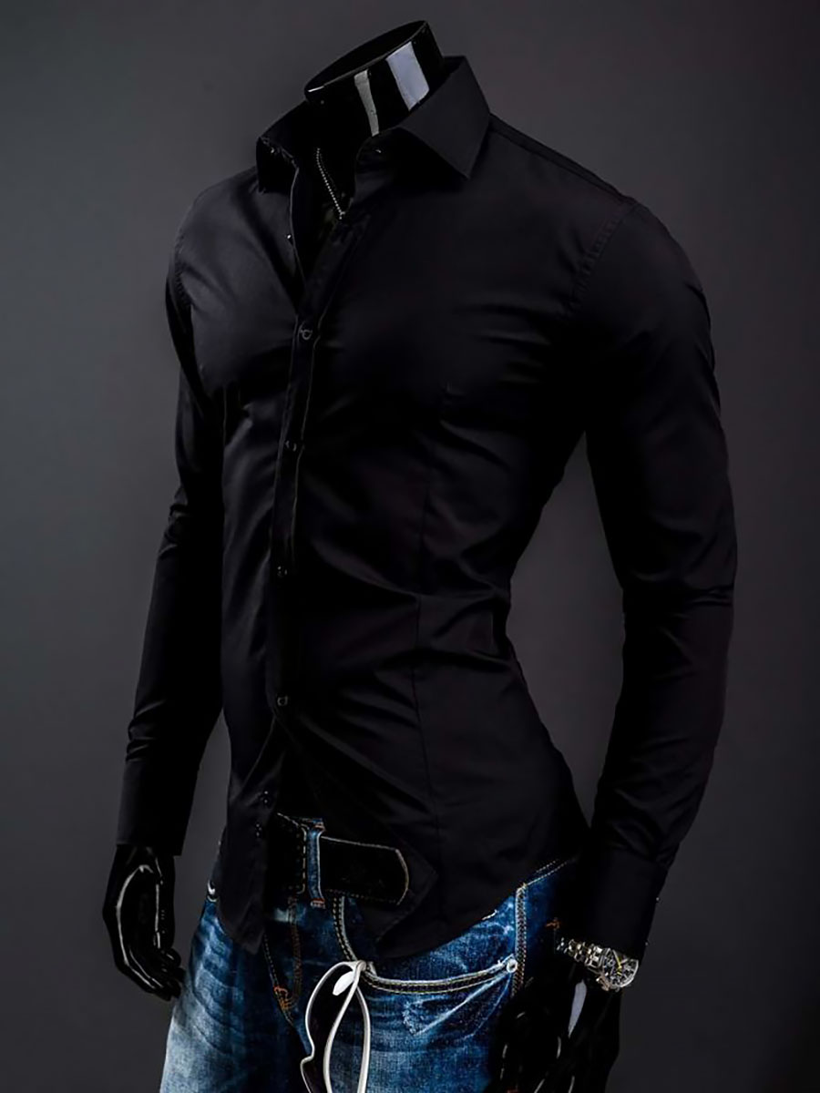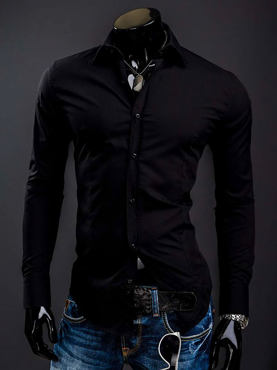 Cămașa neagră elegantă pentru bărbați cu mâneci lungi Bolf 1703A este un articol care ar trebui să fie în garderoba fiecărui bărbat, nu doar una elegantă. Acest model a fost confecționat în culori intensive, datorită acestui lucru pot fi combinați în ținutele zilnice. Aceste cămăși se recomandă fanilor minimalismului și eleganței în modă. Sunt comode și confecționate calitativ. Must have în garderoba bărbatului de afaceri. Modelul clasic și simplu poate fi folosi în diverse ținute si purtat în ținutele zilnice Cămașa are croiala slim fit cu închidere la nasturi și are terminația rotunjită. Mânecile sunt terminate manșete largi reglabile cu închidere la nasture. Are guler clasic.
