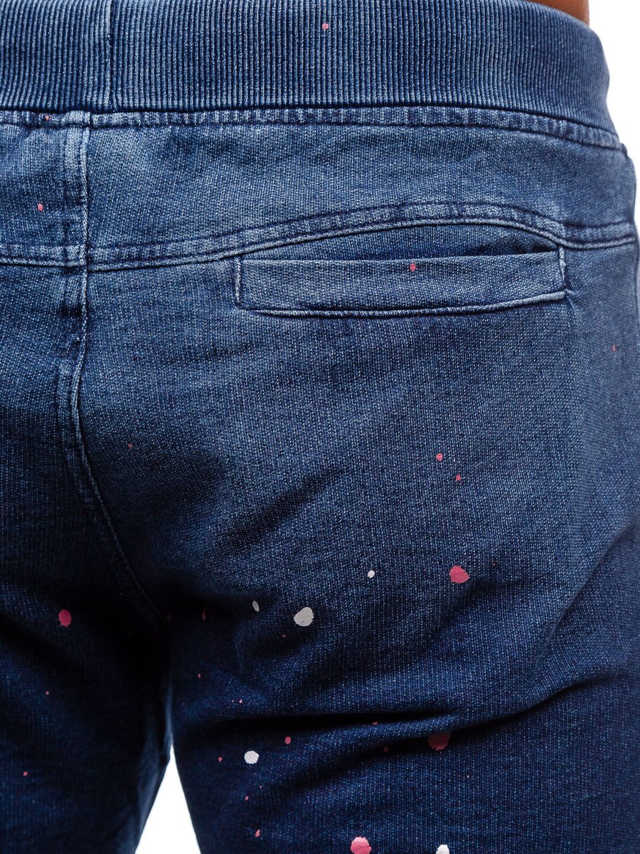 Pantaloni scurți bleumarin Bolf excelenți, ideali în ținutele de primăvară și vară. Comode și foarte practice. Șorții sport au 3 buzunare, culoarea bleumarin, umbrire, imprimeuri și model ce imită petele de vopsea. Poartă-i ex. cu T-shirt, bluză sau tank top.