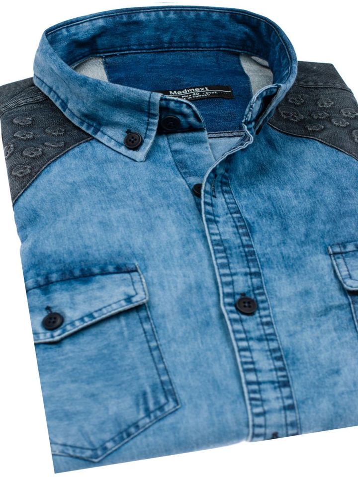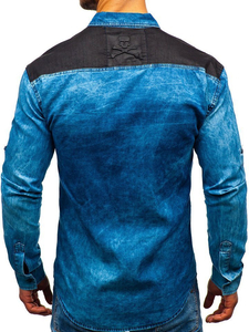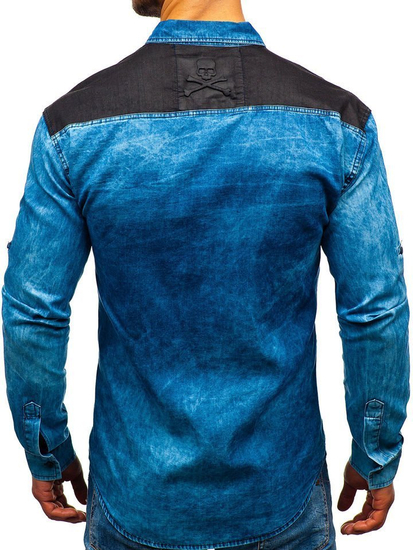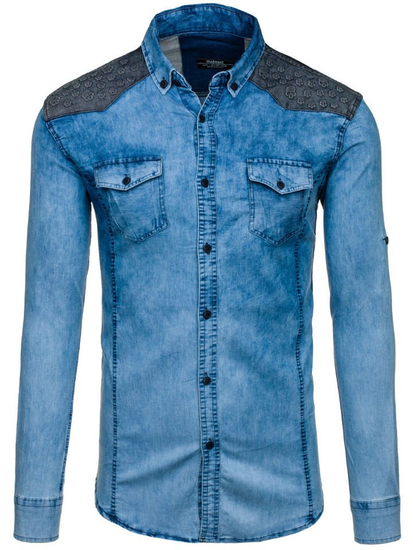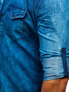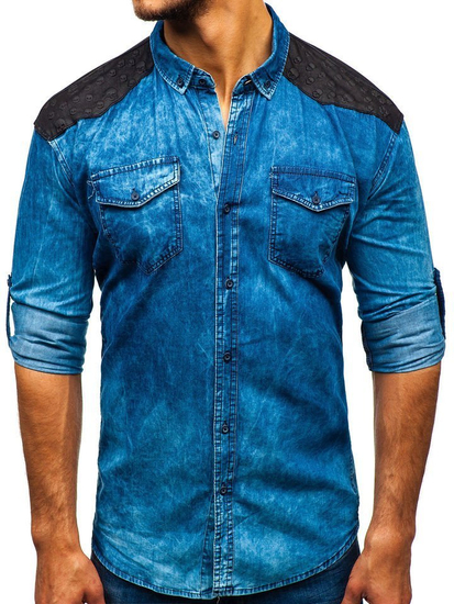 Cămăși denim albastre Bolf pentru mai multe stilizări. Sunt slim, inserțiile evidențiază fain umerii. Cămașa albastră denim slim fit arată bine cu pantaloni chino, purtată deasupra unui T-shirt, sau sub sacou casual. Poartă deasemenea cu pantaloni cargo sau pantaloni baggy.