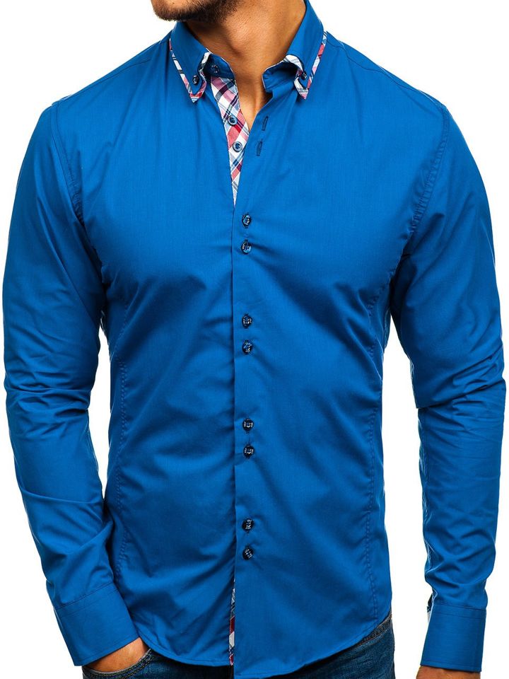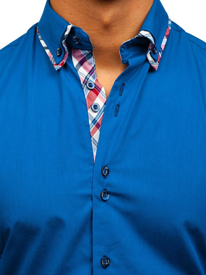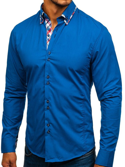 Opiniile utilizatorilor despre Cămașă elegantă pentru bărbat cu mâneca lungă albastră Bolf 4704-1