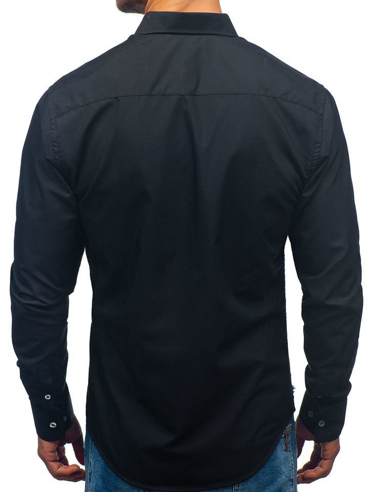 Cămăși foarte elegante pentru bărbat slim fit Bolf cu guler buttown down. Au culoarea clasică neagră și terminația rotunjită. Cămașa pentru bărbat neagră este excelentă, genial se combină în outfit-urile cu sacou, pantaloni chino și cravată. Este ideală zilnic și la ocazii speciale.