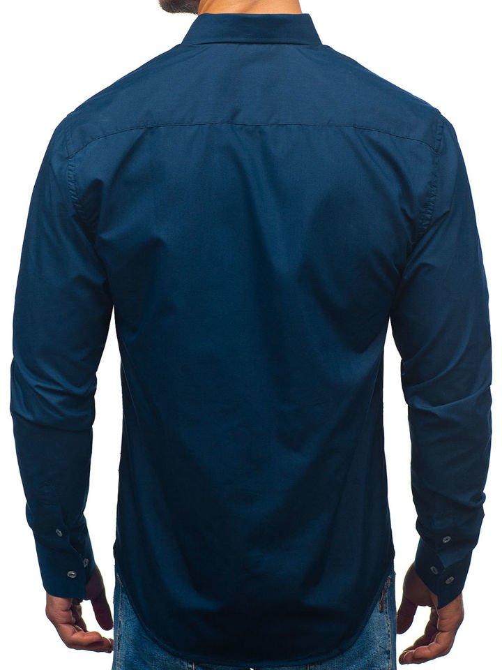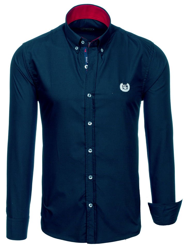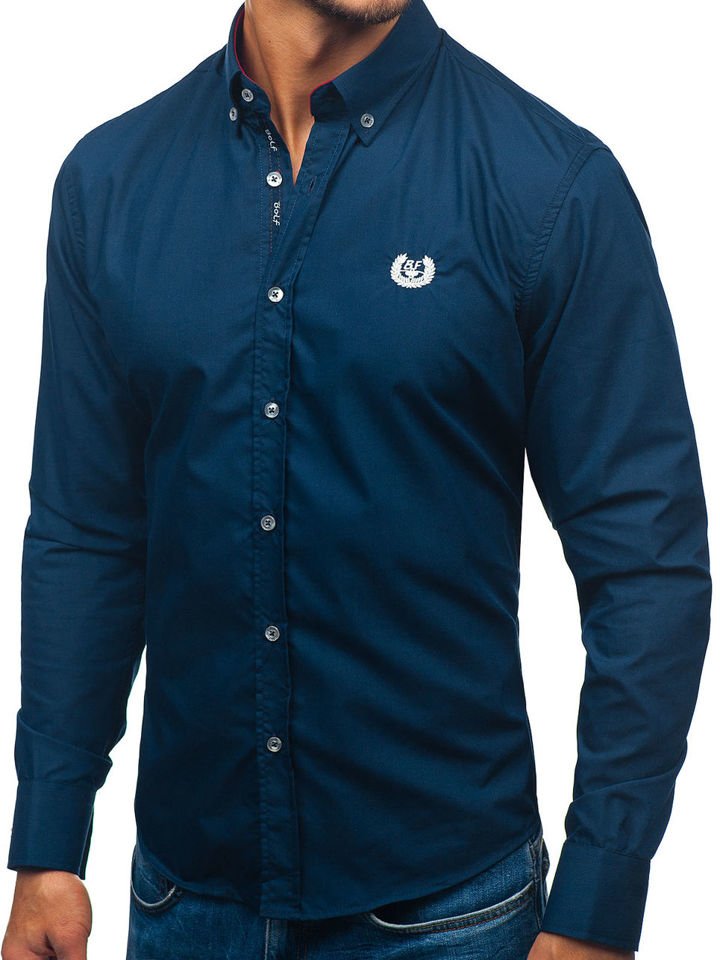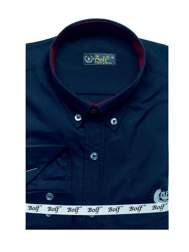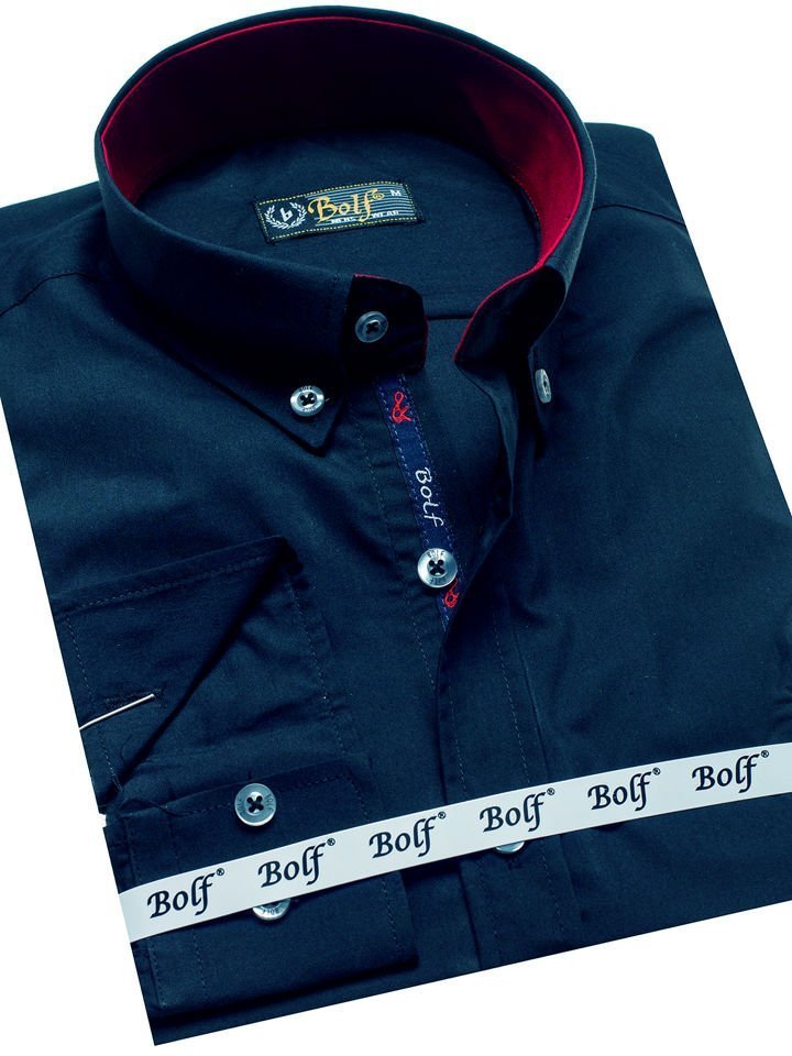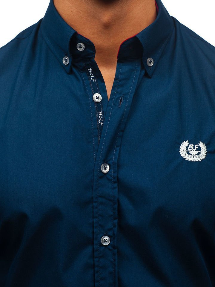 Cămăși foarte elegante pentru bărbat slim fit Bolf cu guler buttown down. Au culoarea clasică bluemarin și terminația rotunjită. Cămașa pentru bărbat bluemarin este excelentă, genial se combină în outfit-urile cu sacou, pantaloni chino și cravată. Este ideală zilnic și la ocazii speciale.