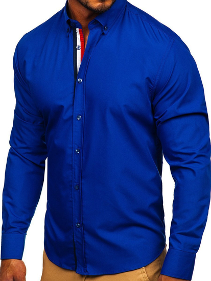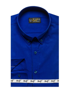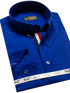 Cămăși elegante slim fit Bolf cu guler buttown down. Au culoarea frumosă albastru-cobalt și terminația rotunjită. Cămașa pentru bărbat albastru-cobalt este excelentă, genial se combină în outfit-urile cu sacou, pantaloni chino și cravată. Este ideală zilnic și la ocazii speciale.
