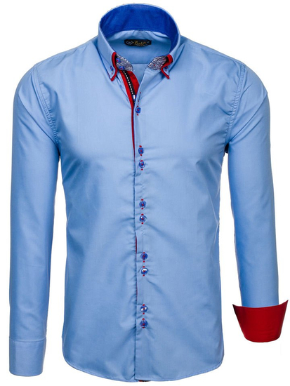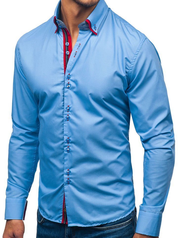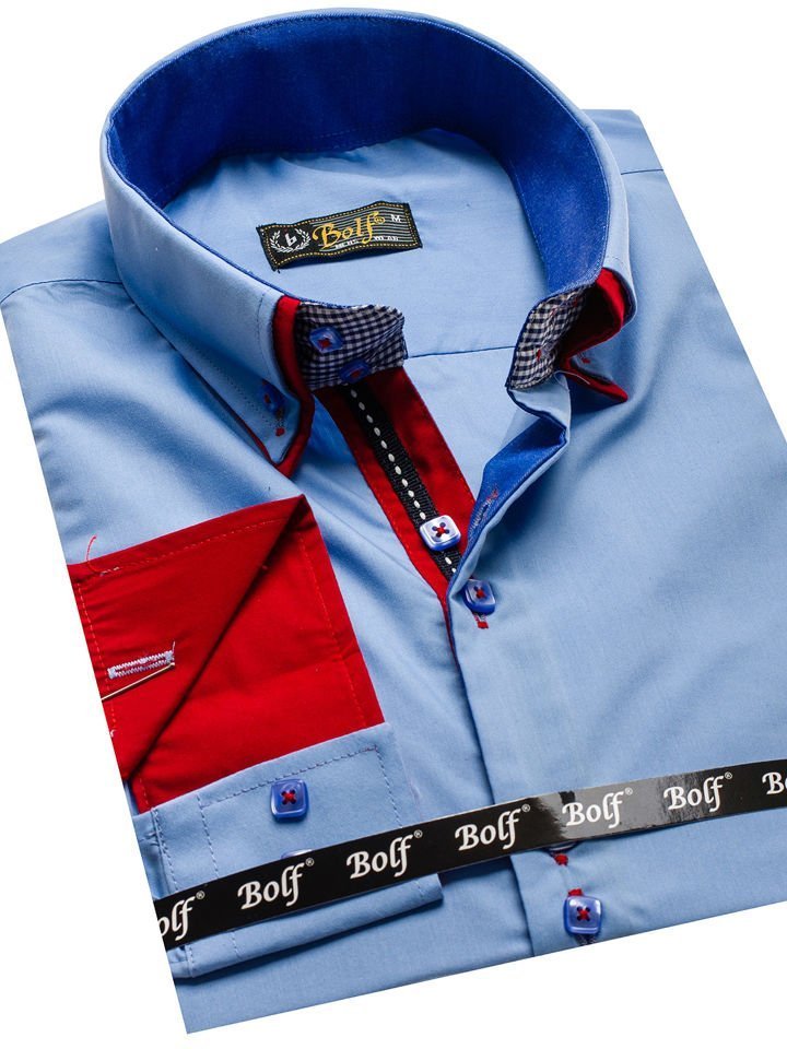 Cămăși stilate pentru bărbat slim fit Bolf cu guler dublu buttown down. Au culoarea frumosă albastru-deschis și terminația rotunjită. Cămașa pentru bărbat albastru-deschis este excelentă, genial se combină în outfit-urile cu sacou, pantaloni chino și cravată. Este ideală zilnic și la ocazii speciale.