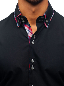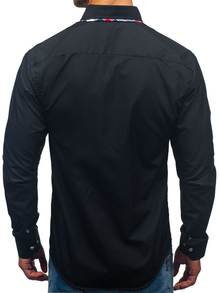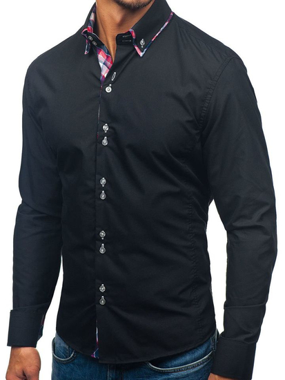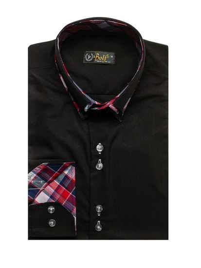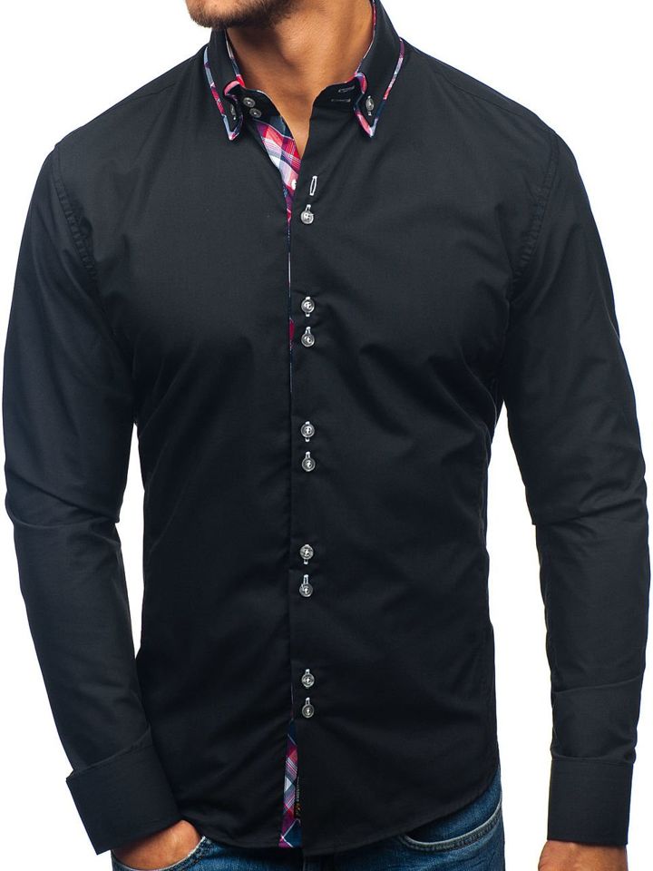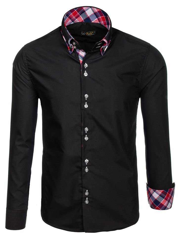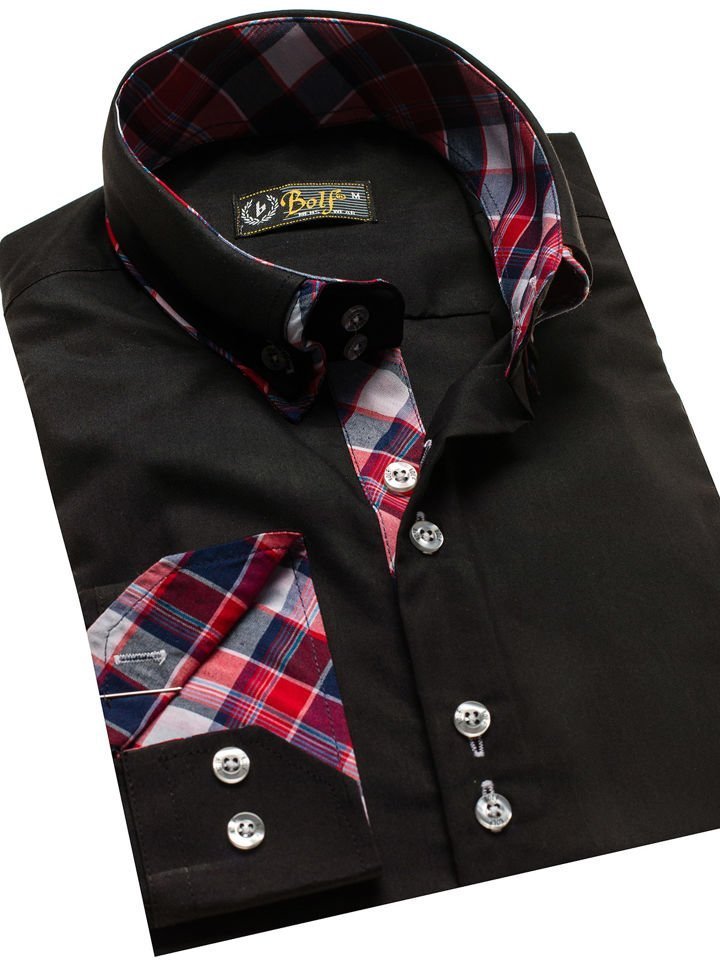Cămăși excelente casual pentru bărbat slim fit Bolf cu guler dublu buttown down. De culoare neagră, terminația rotunjită și guler dublu cu inserție frumoasă. Cămașa pentru bărbat neagră este excelentă, genial se combină în outfit-urile cu sacou, pantaloni chino și geacă de piele. Este ideală zilnic și la ocazii speciale.