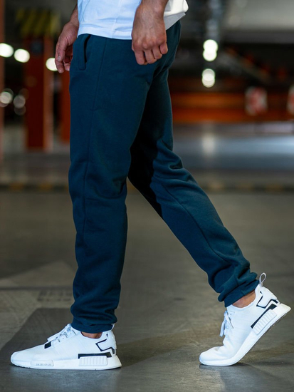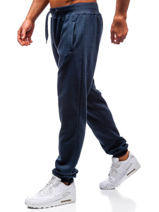 Pantaloni sportivi pentru bărbat universali Bolf culoarea bleumarin. Au două buzunare practice și elastic puternic reglabil în talie. Pantalonii bleumarin sportivi pentru bărbat garantează libertatea, ideali la trening Se potrivesc în stilizările sportive. Combină-i cu bluză, T-shirt, adidasi.