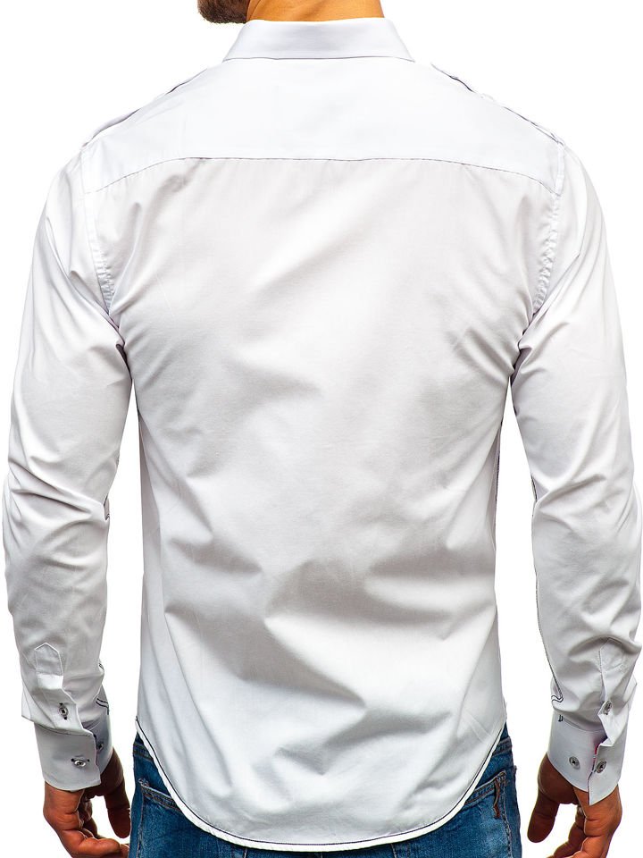 Cămăși clasice albe, slim fit Bolf cu epoleți la umeri. De neînlocuit, dacă dorești să creezi un look minunat, modern la multe ocazii. Cămașa albă cu mâneca lungă este un model casual. Stilată, comodă, subțiază silueta. Crează un duet excelent cu jeanși.