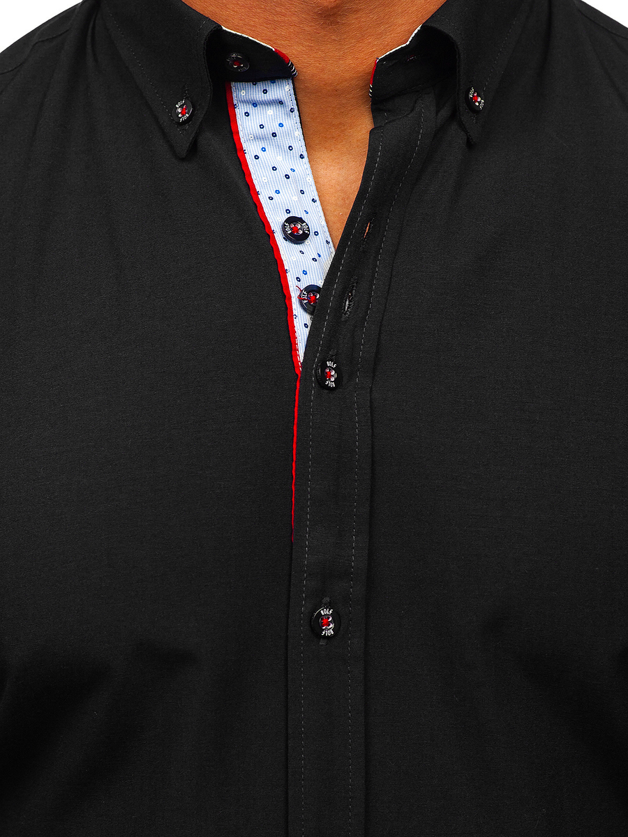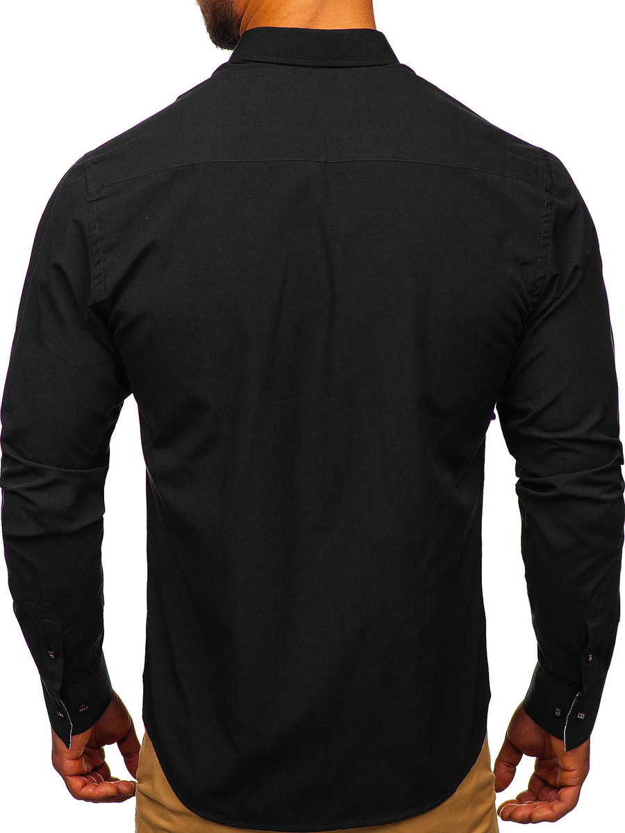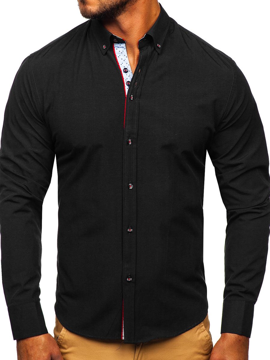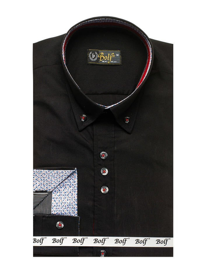 Cămăși clasice negre pentru bărbat Bolf combină clasica și eleganța. Sunt o alegere excelentă la ocazie specială. Cămașa neagră pentru bărbat are croiala slim, gulerul button down îi conferă ușurință. Are închidere foarte comodă cu nasturi Alege-o în stilizările cu pantaloni chino și sacou.