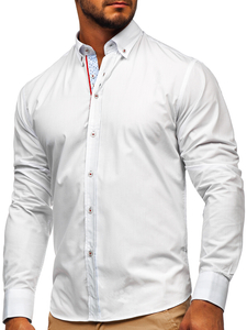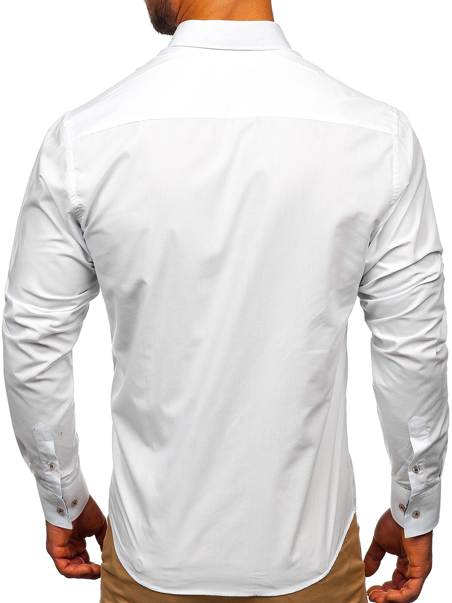 Cămăși clasice albe pentru bărbat Bolf combină clasica și eleganța. Sunt o alegere excelentă la ocazie specială. Cămașa albă pentru bărbat are croiala slim, gulerul button down îi conferă ușurință. Are închidere foarte comodă cu nasturi Alege-o în stilizările cu pantaloni chino și sacou.