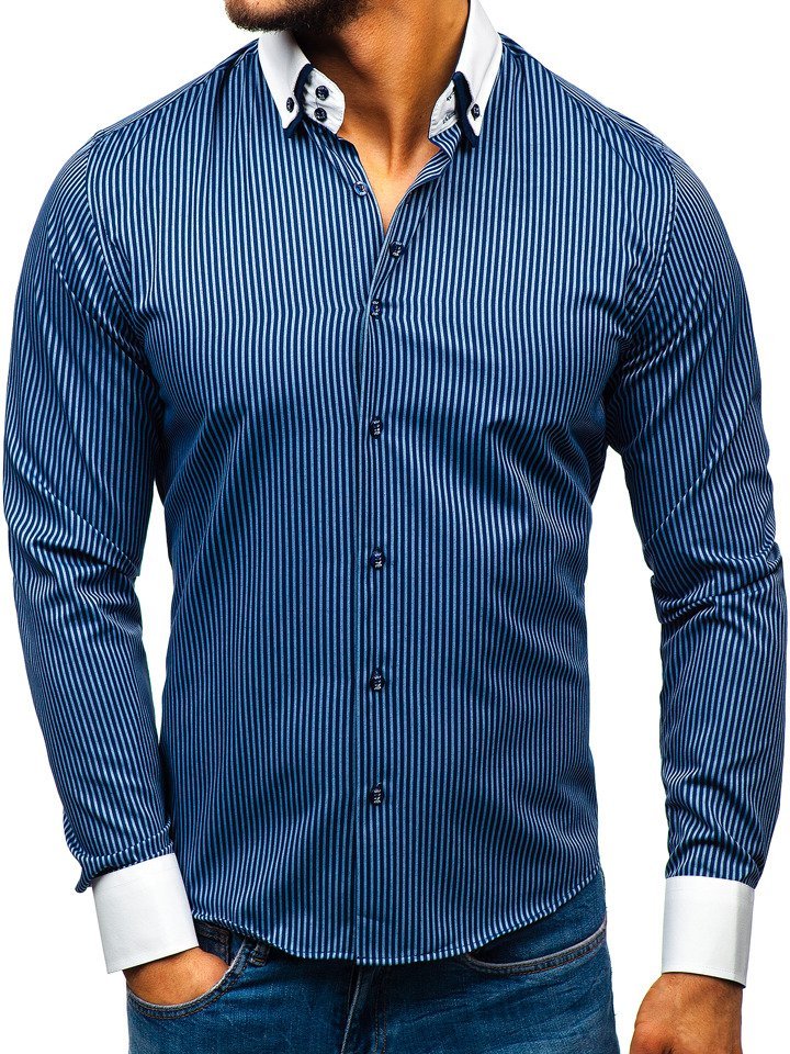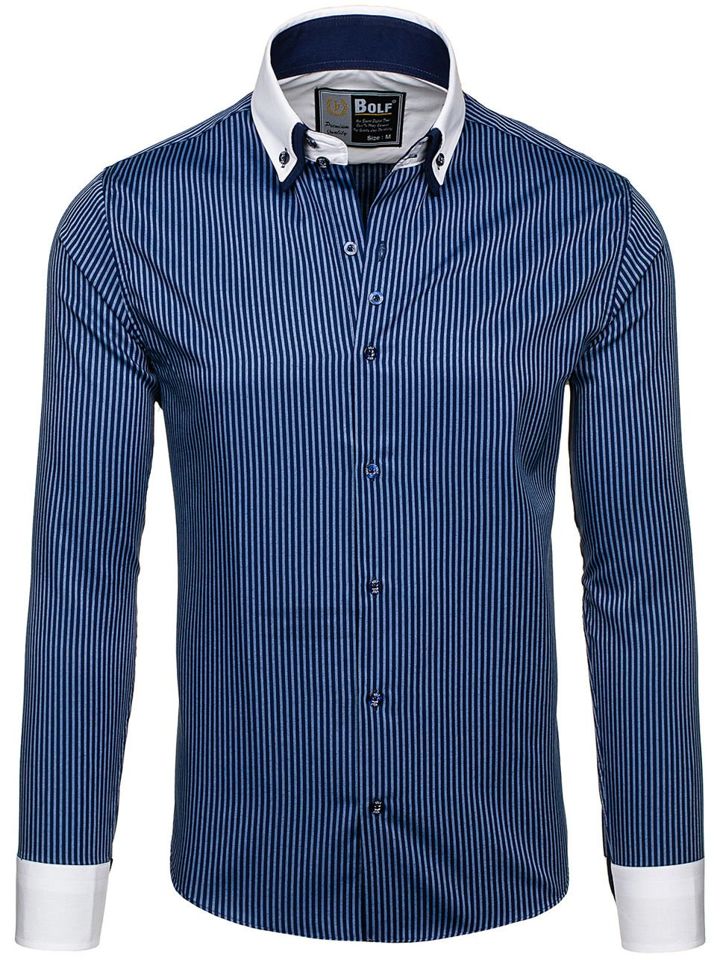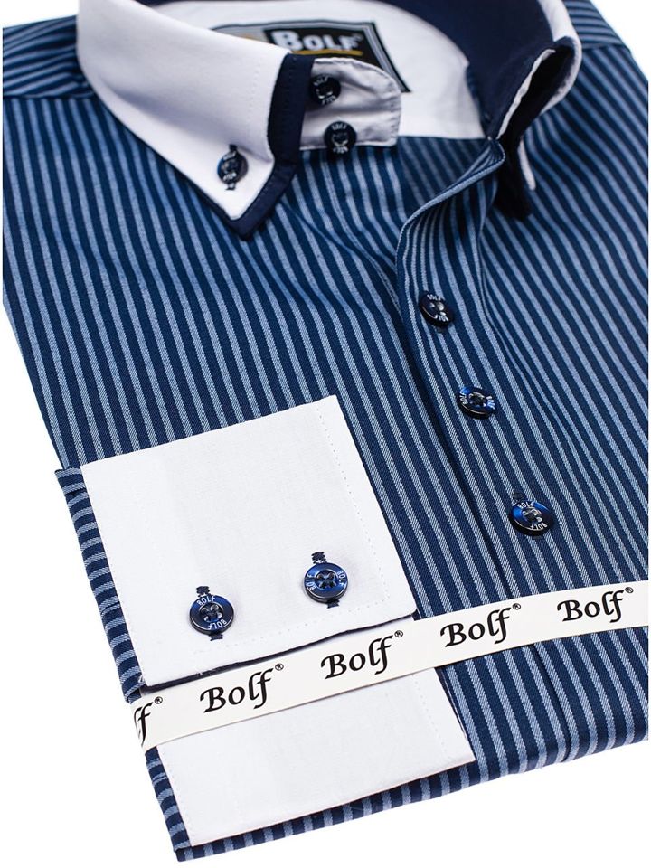 Opiniile utilizatorilor despre Cămașă elegantă în dungi bărbați bleumarin Bolf 0909-A