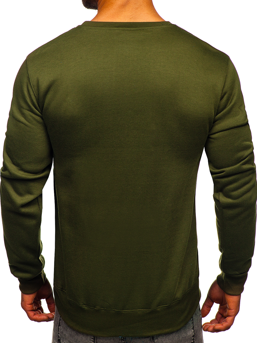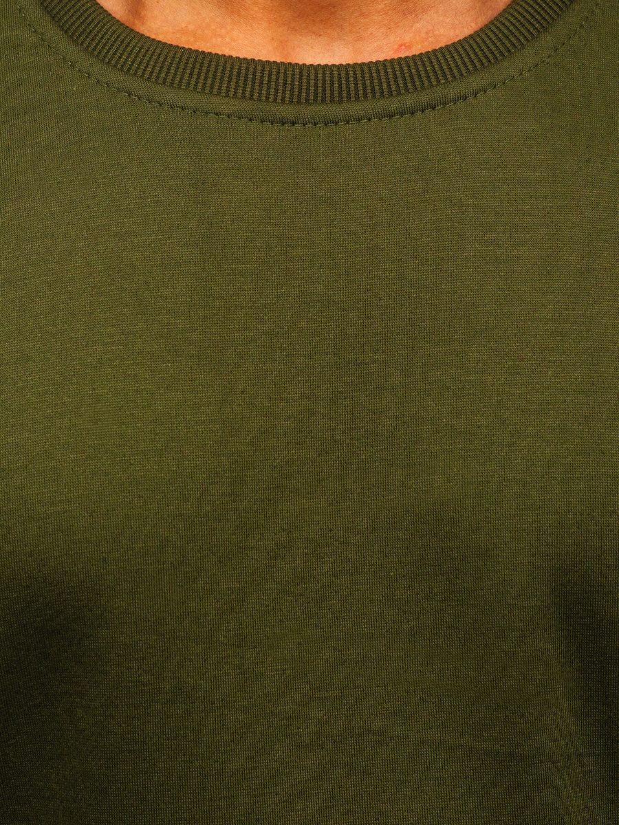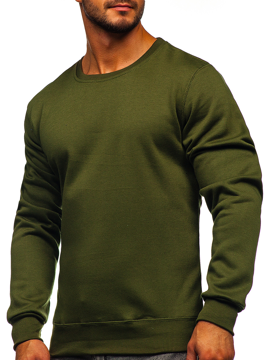 Bluza bărbați Bolf 2001 culoare verde-olive model basic. Acest model a fost confecționat în culori intensive, datorită acestui lucru pot fi combinați în ținutele zilnice. Bluza se recomandă fanilor minimalismului. Netede, comode și cusute calitativ. Must have în dulapul masculin. Model clasic simplu se va potrivi în ținutele zilnice și de strada Mânecile și terminatia bluzei terminate cu elastice. Produsul este confectionat din material placut la atingere .