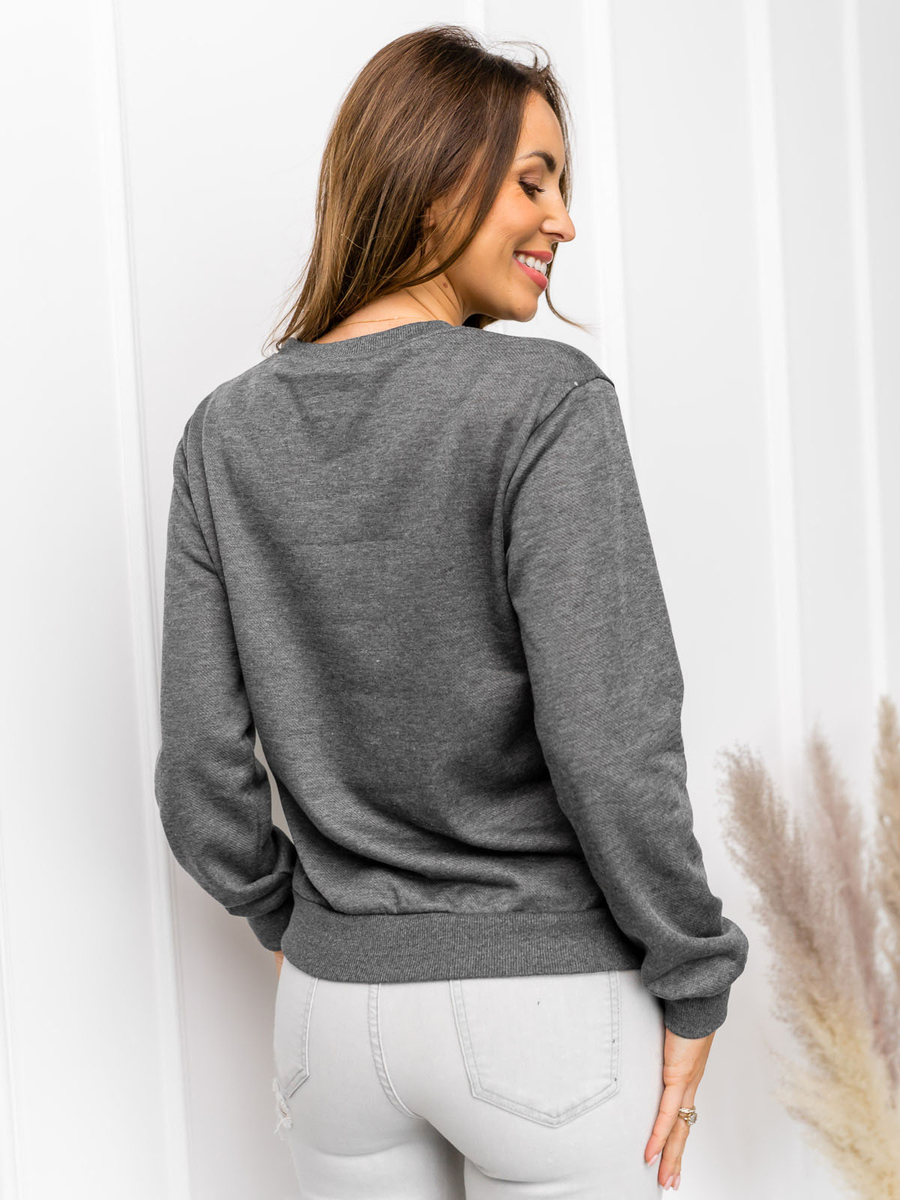 Bluza dame grafit WB11002 este o bluză universală simplă. Un model foarte popular în ultimul sezon, disponibil în multe culori. Bluza este netedă, confecționată din material excelent. La terminatie și mâneci cu elastice. Are decolteu rotunjit cu dungă subțire Este un produs tip basic care se va potrivi în combinare cu mai multe articole ale garderobei.