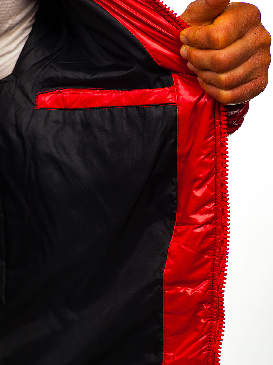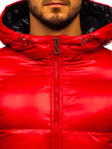 Geci roșii de iarnă din colecția Bolf, comode și practice ideale în stilul streetwear. Matlasate, au glugă reglabilă, 3 buzunare practice cu închidere la fermoar. Geaca de iarnă roșie este excelentă în ținutele zilnice . Poartă cu blugi, pantaloni training, adidași.