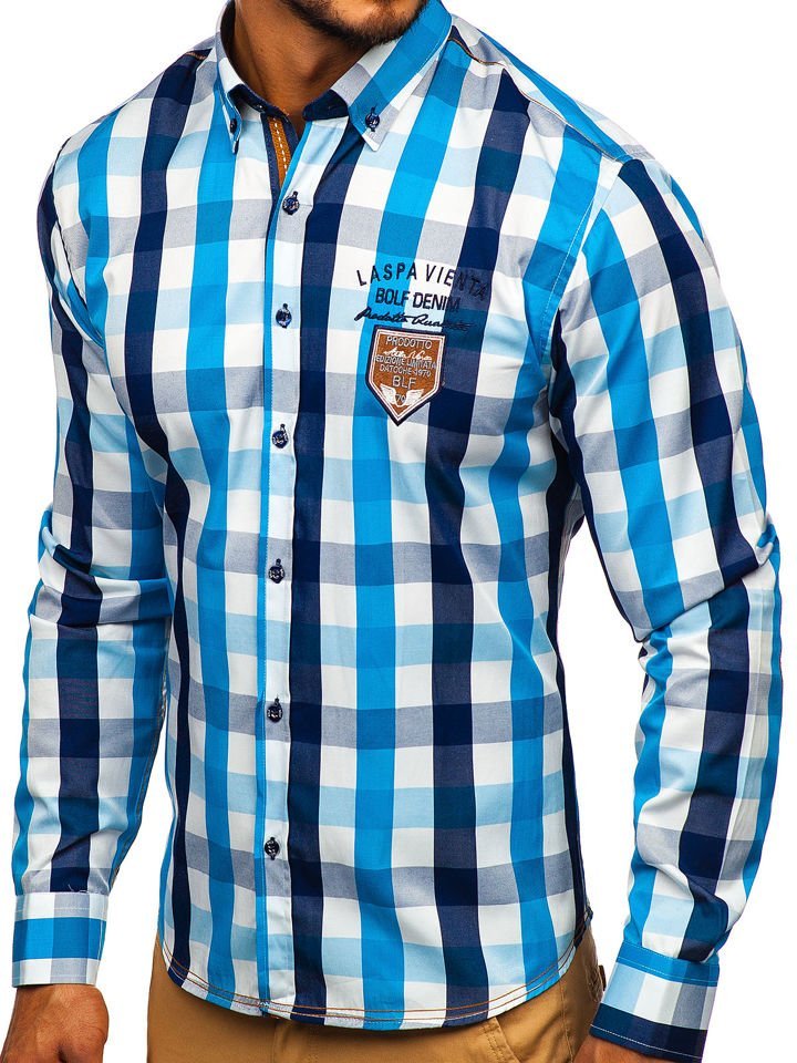 Opiniile utilizatorilor despre Cămașă în carouri cu mâneca lungă albastru Bolf 1766-1