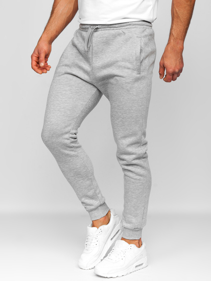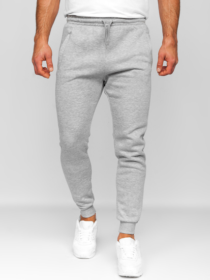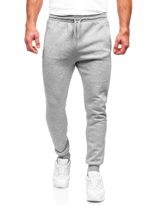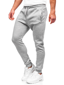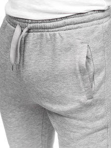 Pantaloni de trening gri bărbați CK01. Pantalonii au au reglare în talie cu șnur și elastic, doua buzunare pe laterală. Modelul simplu și elastice la picioare conferă un aspect sport. Produsul este confecționat din material delicat, plăcut la atingere, care se așează excelent pe corp.