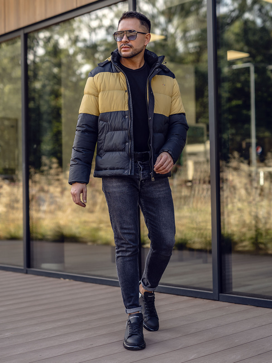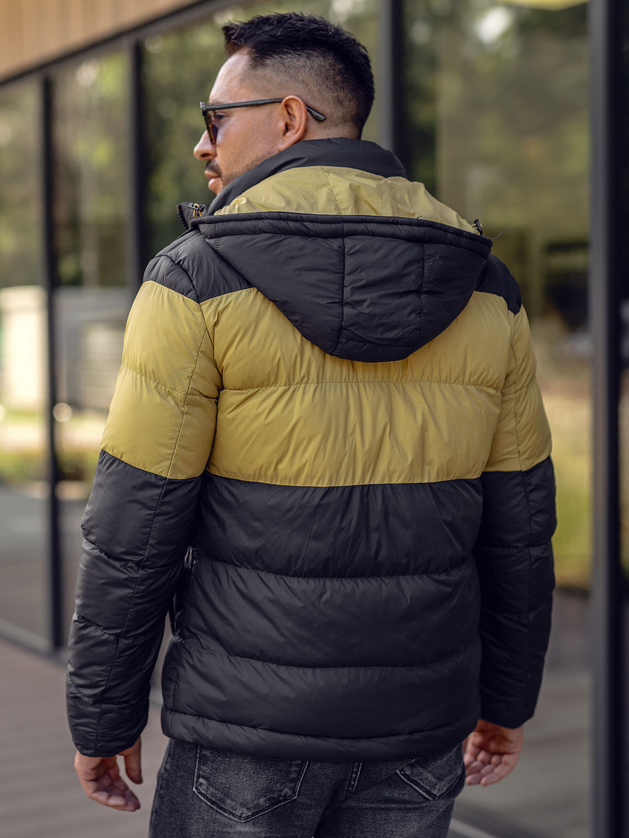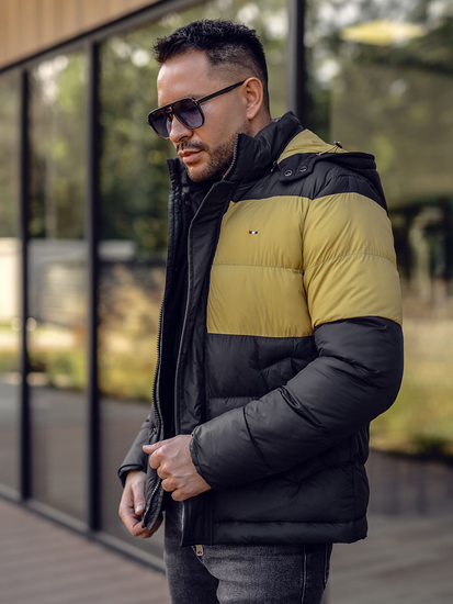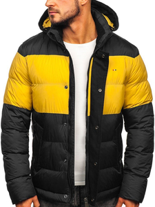 Geacă de iarnă sport neagră 1975 Produsul are matlasare, glugă reglabilă, inserție la piept, două buzunare exterioare cu nasturi, unul interior și guler tunică. Elementele caracteristice ale gecii sunt combinarea a două culori- negru și galben. Geacastilatăeste o alegere ideală pentru cei ce prețuiesc confortul și stilul.