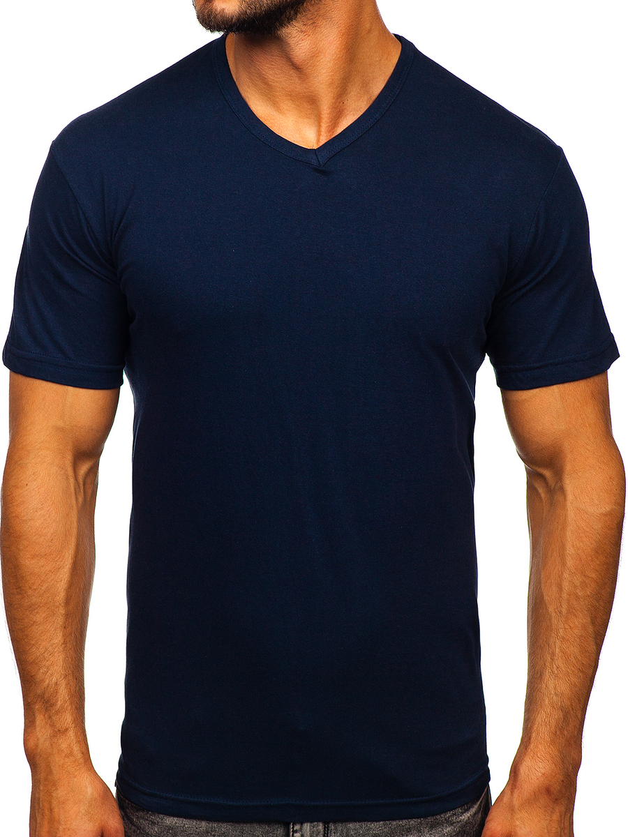 Opiniile utilizatorilor despre Tricou bărbătesc bleumarin, simplu, cu decolteu în V, Bolf 192131