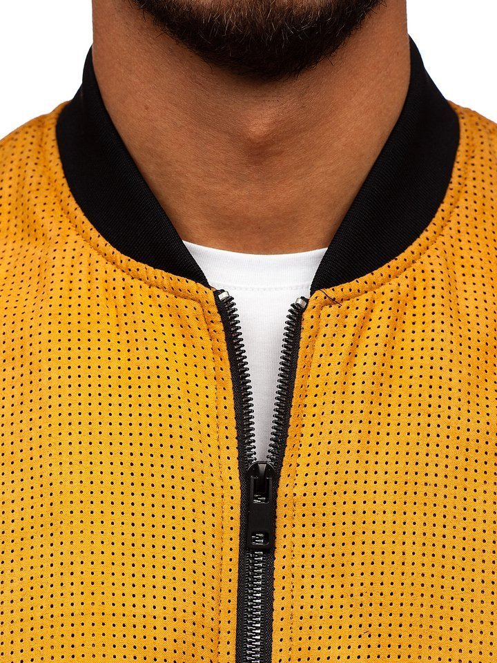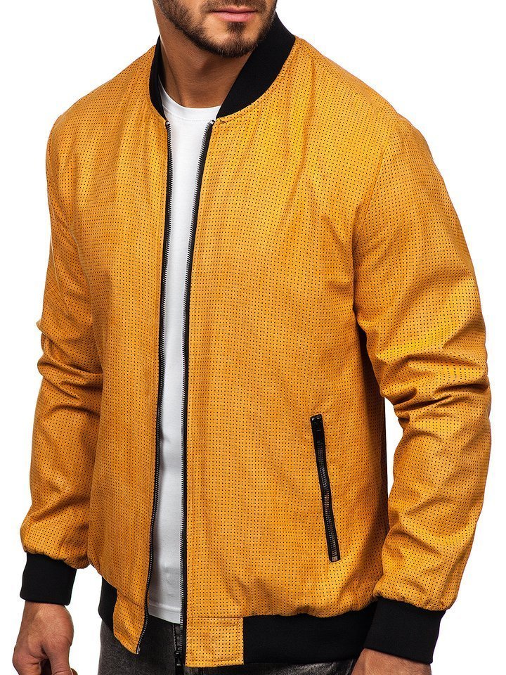 Geacă bărbați Bolf 6115 excelentă în zilele de primăvara. Geacă clasică culoare camel cu închidere la fermoar. Guler tip tunică cu elastic negru. Două buzunare exterioare cu fermoar și unul interior. Mânecile și terminați gecii cu elastice